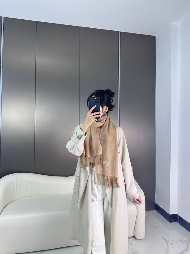Highly recommend this one! A rare high-end women's scarf, a great deal for family members. The fabric is incredibly soft, delicate, and comfortable. It's stylish, simple, and has a super flattering color scheme that's universally appealing. The small logo adds a touch of understated elegance. The bulk order was shipped several months ago; this is a limited-edition stock for everyone. It's a classic 30cm wide cashmere scarf, unisex, 100% cashmere, size 30*. Perfect for both formal and casual wear. Fold it in half and wear it as a drape or wrap it around your neck