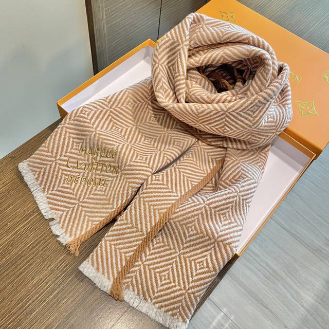 Hot Item: Exclusive LV High-End Quality Checkerboard Knit Scarf. This exquisite piece is extremely rare on the market. The checkerboard knit yarn is truly a super high-end product, only available from top brands. Every color is irresistible. A rare find, each piece sold out quickly. Material: 100% cashmere. Size: 35X200Cm. DDD