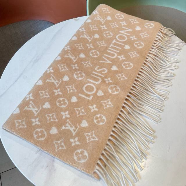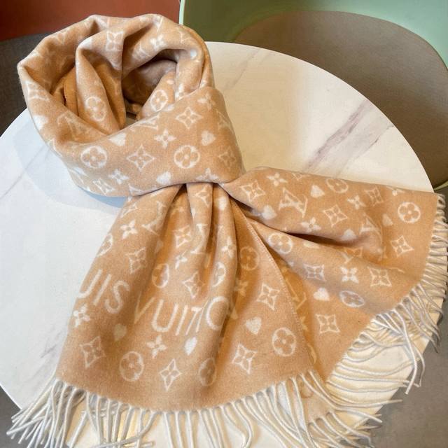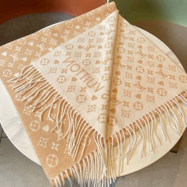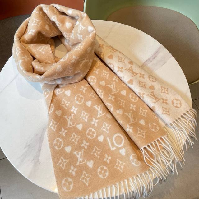 / Limited Edition Cashmere Scarf with Classic Little Logo and Full Heart Design by