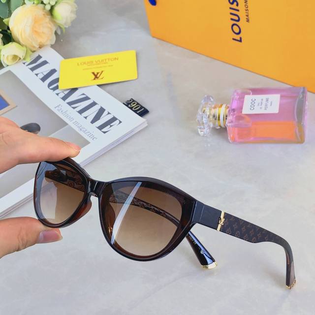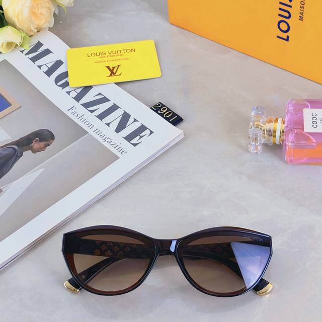 Louis Vuitto* High-end sunglasses for women, unique Instagram style, cat-eye design, sun protection, UV protection, versatile for photos, men's sunglasses
