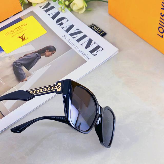 Louis Vuitto* new European and American style cat-eye sunglasses, fashionable large frame, the same style as the Internet celebrity sunglasses, sun protection, large face, slimming, trendy women