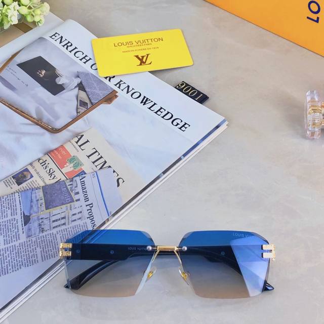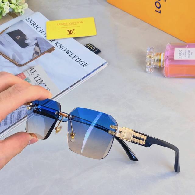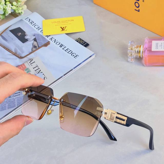 Louis Vuitto* new square frameless sunglasses with trimmings, popular online personality, street style glasses, large frame, fashionable sunglasses