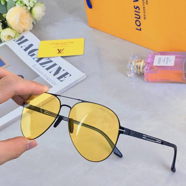 Louis Vuitto* Slim Nylon Polarized Sunglasses, Weldless Stainless Steel Sunglasses, Men's Aviator Sunglasses