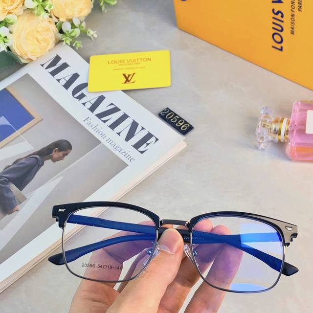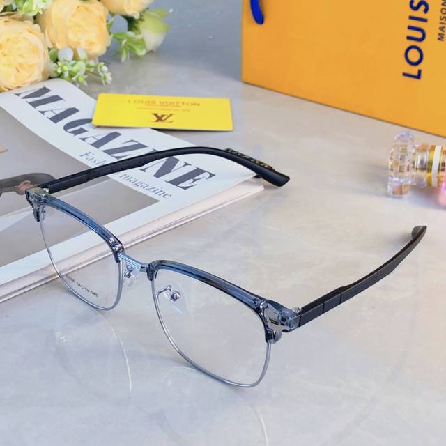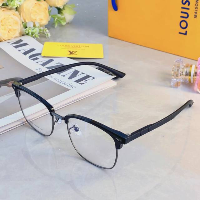 Louis Vuitto* Ultralight Casual Black Half-Rim Glasses, Prescription Available, Men's Style,
