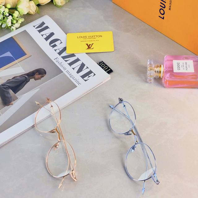 Louis Vuitto* Ultralight Fashion Star Eyeglasses Frames Women's, No Makeup, Popular on Xiaohongshu, Anti-Blue Light Prescription Glasses Frames Men's DDD