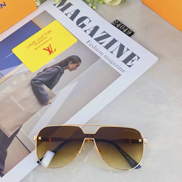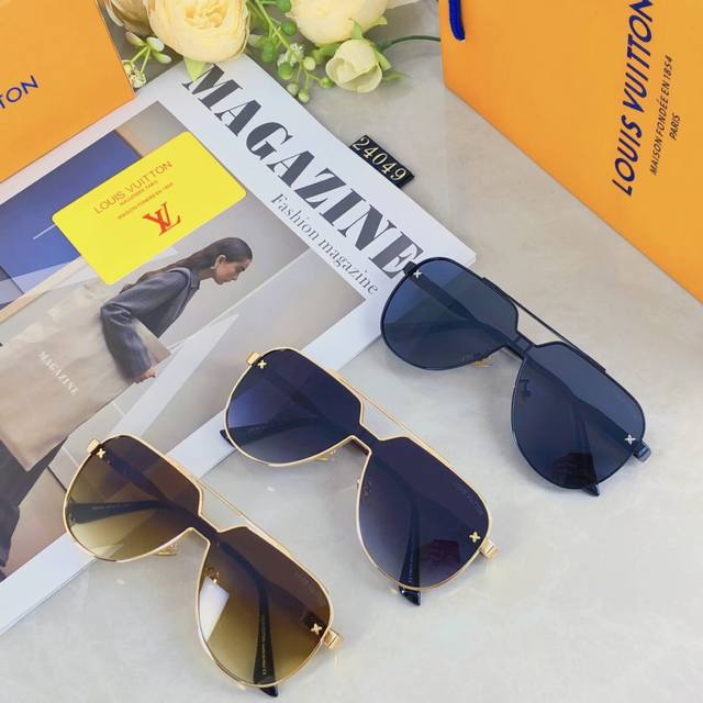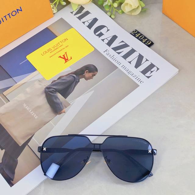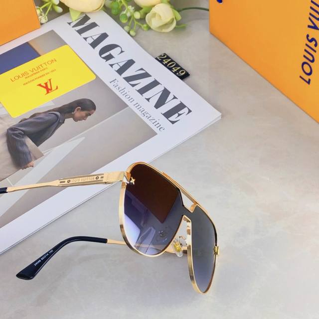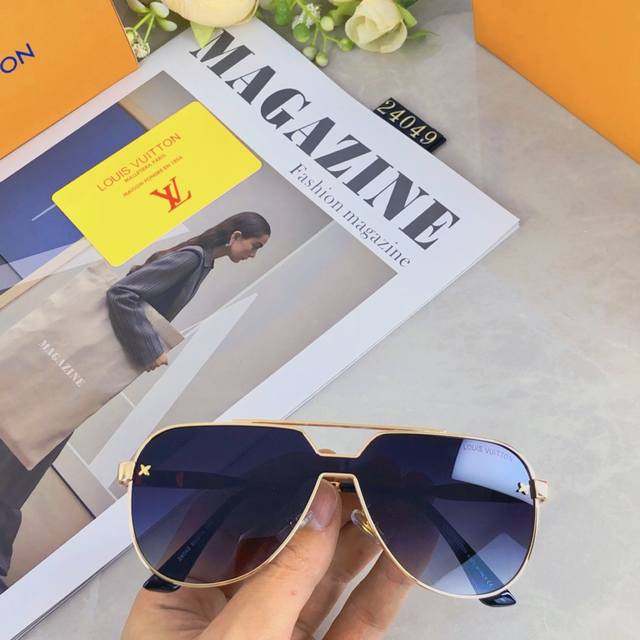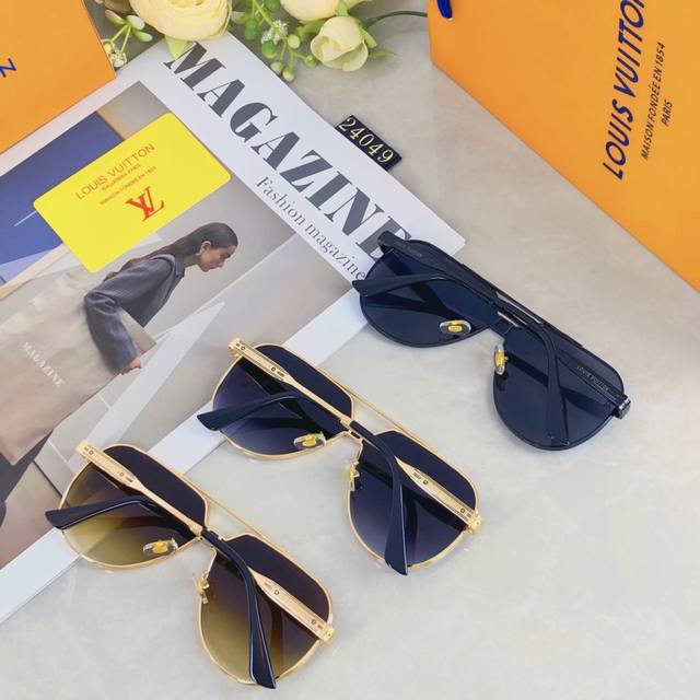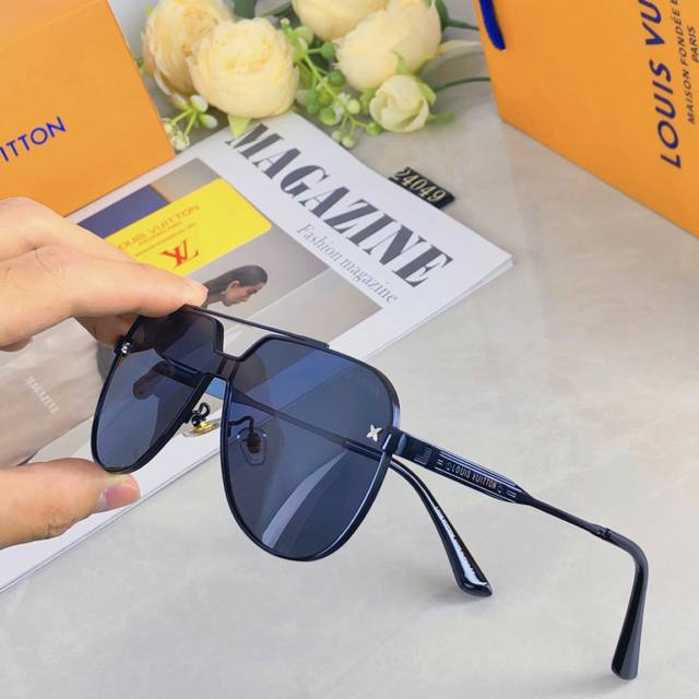 Louis Vuitto*Fashionable luxury metal style integrated toad sunglasses, all-match large frame driving sunglasses