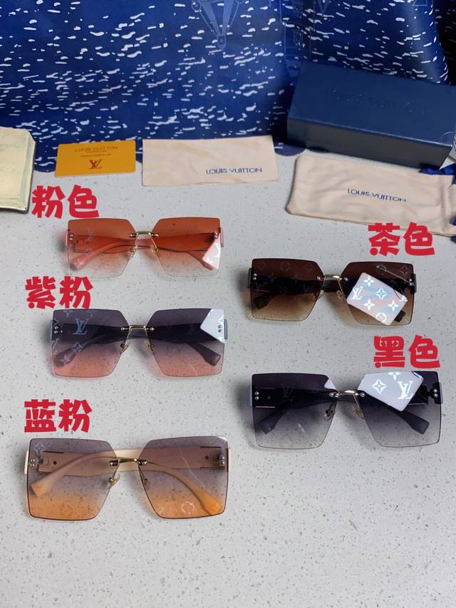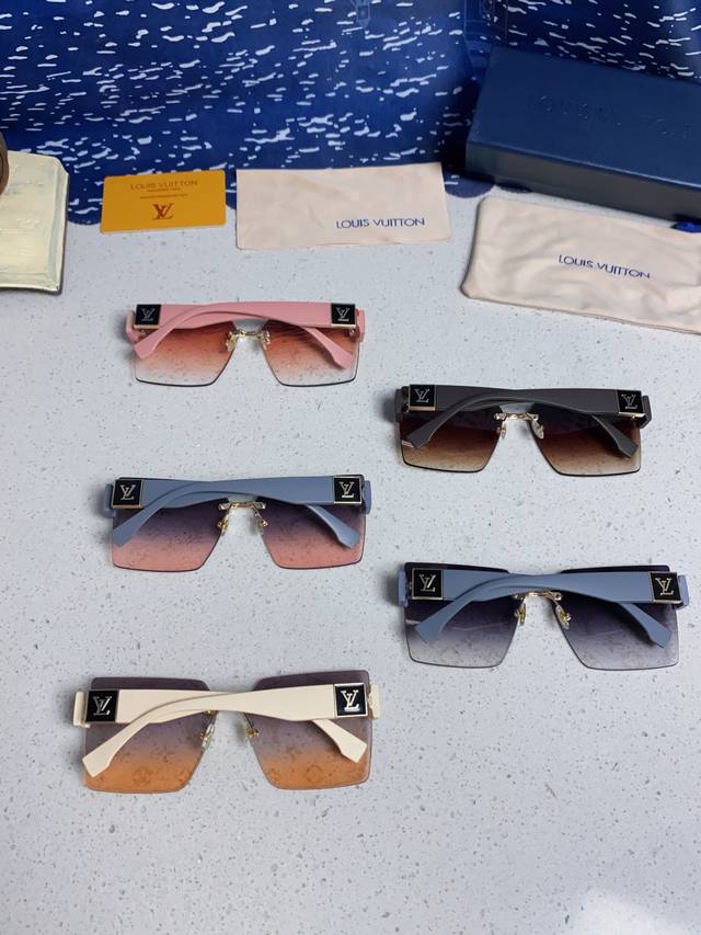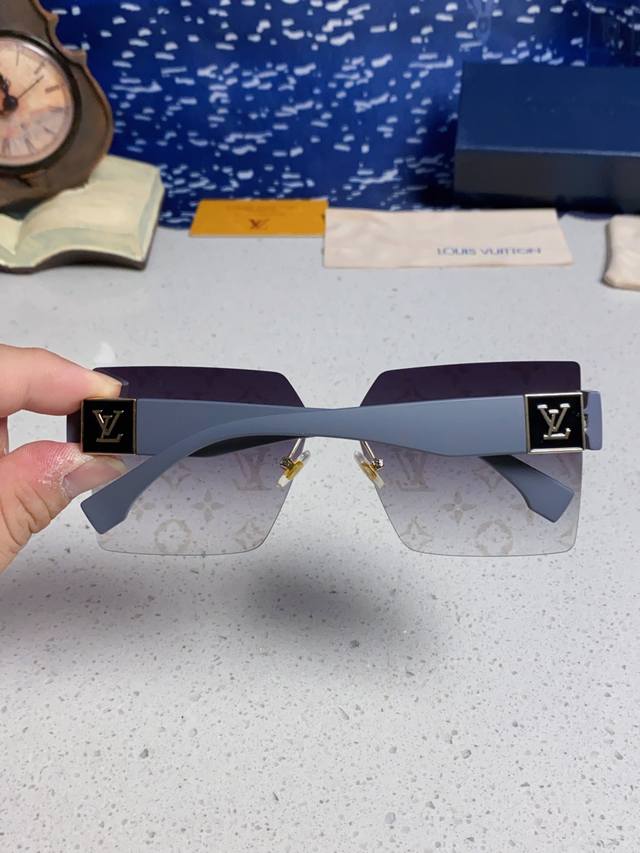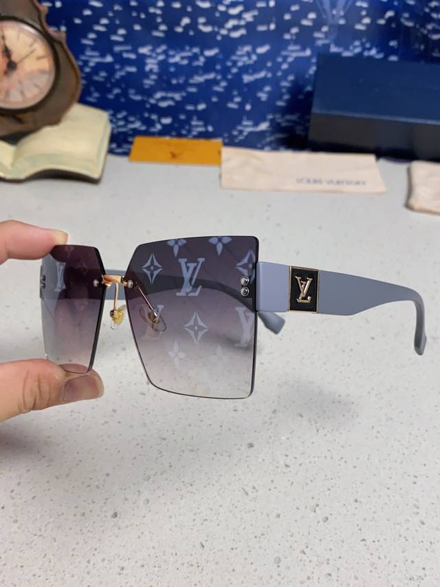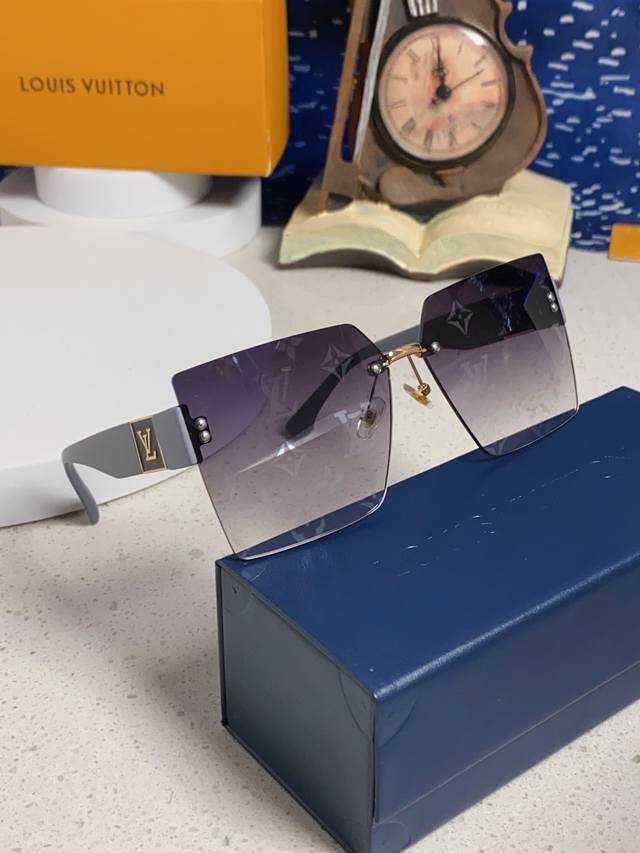 Louis Vuitton 2025 New Korean Style Fashion Frameless Beveled Large Frame Round Face Sunglasses with Starry Sky Edge Popular UV Protection Elegant Square Sunglasses DDD