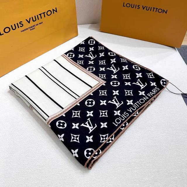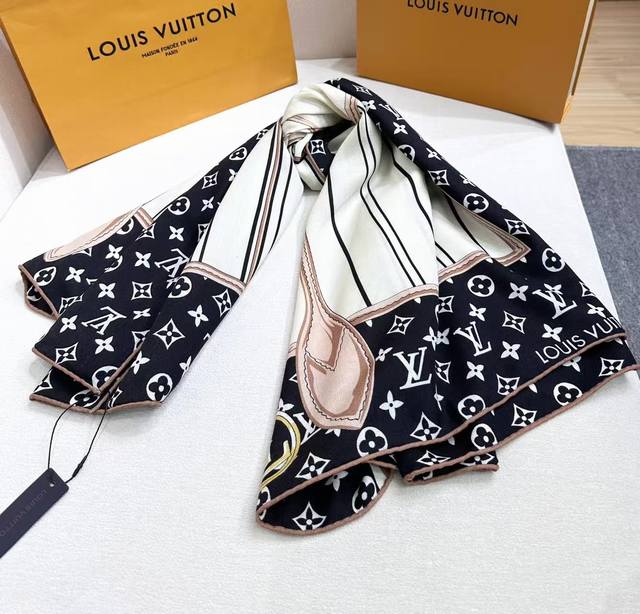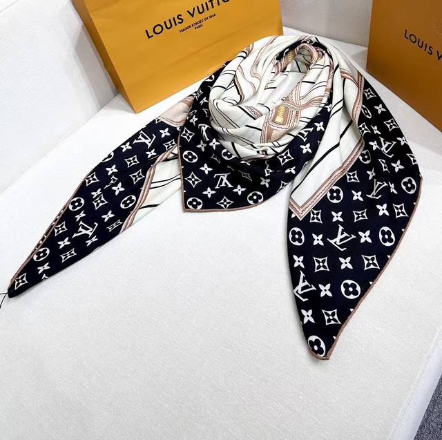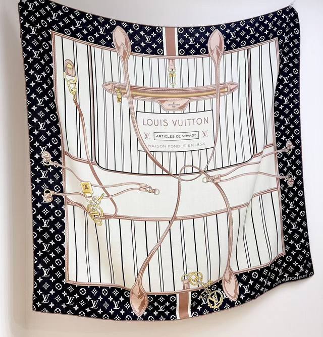 Louis Vuitton 90 A uniquely soft, pyramid-like digital print, the DDD My Neverfull velvet scarf echoes the sophisticated style of the Neverfull handbag, paying homage to the brand's trunk-making tradition. The shoulder strap, LV Circle logo, and padlock pattern highlight classic elements, while Louis Vuitton appliqu