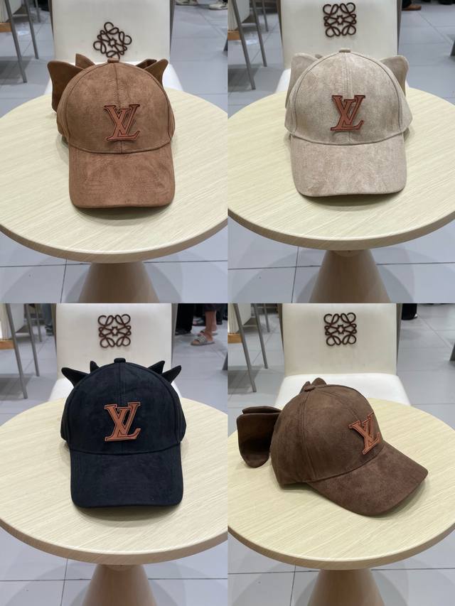 Louis Vuitton baseball cap Louisvuitton design bow baseball cap deer antler leather hard top slim hat women's autumn and winter age-reducing stylish slimming cap