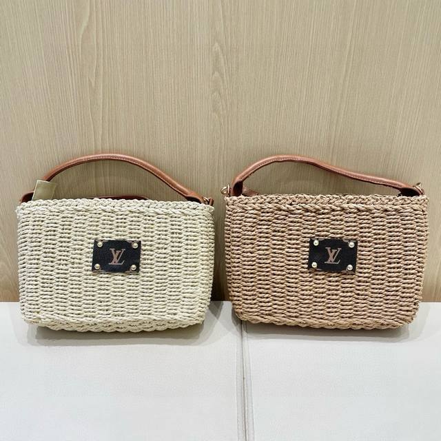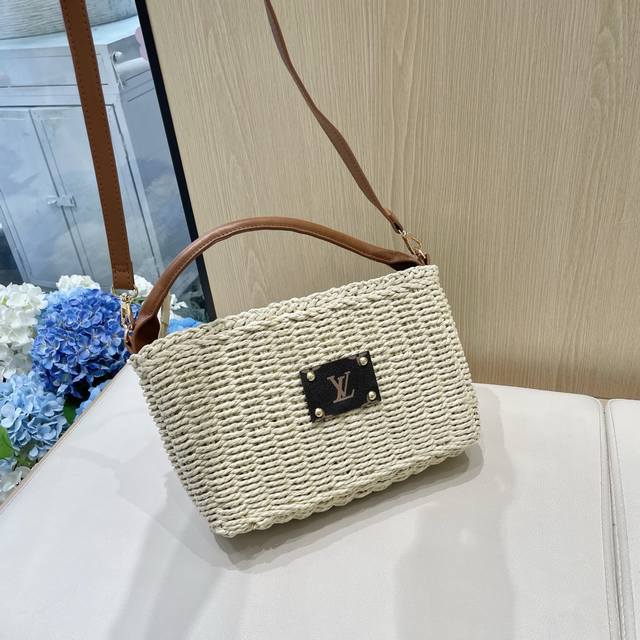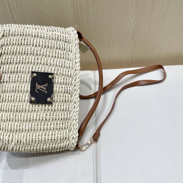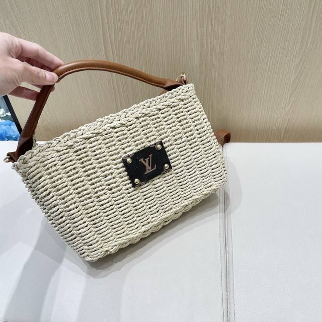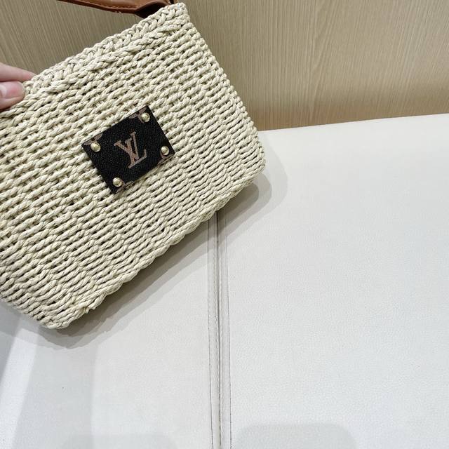 Louis Vuitton baseball cap, new envelope-shaped magnetic buckle straw bag, influencer-inspired woven shoulder and crossbody bag, casual solid-color beach bag for women, dimensions: Length 27 x Width 18
