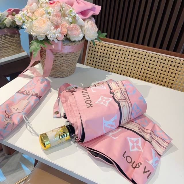 Louis Vuitton Classic Chain Trifold Automatic Folding Umbrella New coating technology dark umbrella has a surprising light-blocking effect! 3 colors