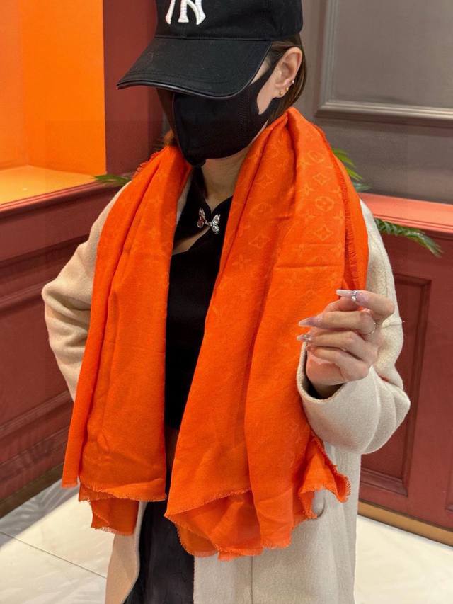 Louis Vuitton Jacquard Silk Cashmere Scarf, top-grade original overstock. This is truly high-quality, living up to expectations. We've finally received the Louis Vuitton boutique's hottest new arrival that you've all been waiting for! A very satisfactory export order. This jacquard cashmere badge scarf series is from my Louis Vuitton store; their products are anything but ordinary. You can tell the quality just by looking at the rough material; the texture is clear, and the fabric is made from excellent Nepalese cashmere. The touch is soft and delicate, like a baby's skin. The scarf has a dynamic and energetic fringed design. It retails for 5400+ RMB, but we're saving you money! 140*140cm. [