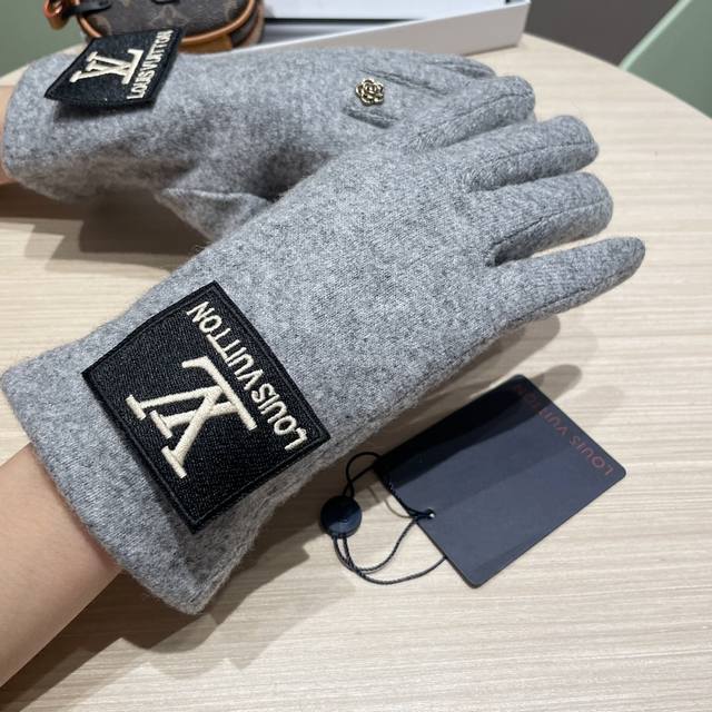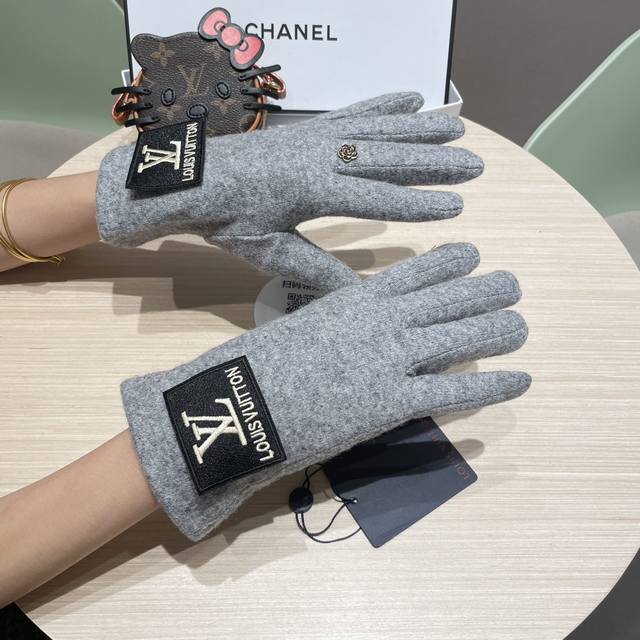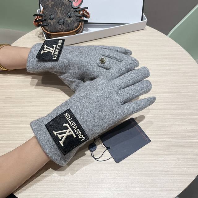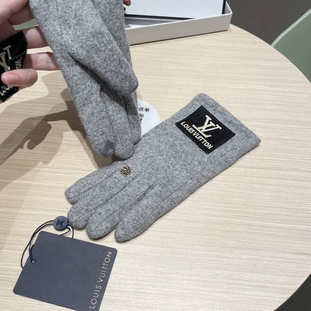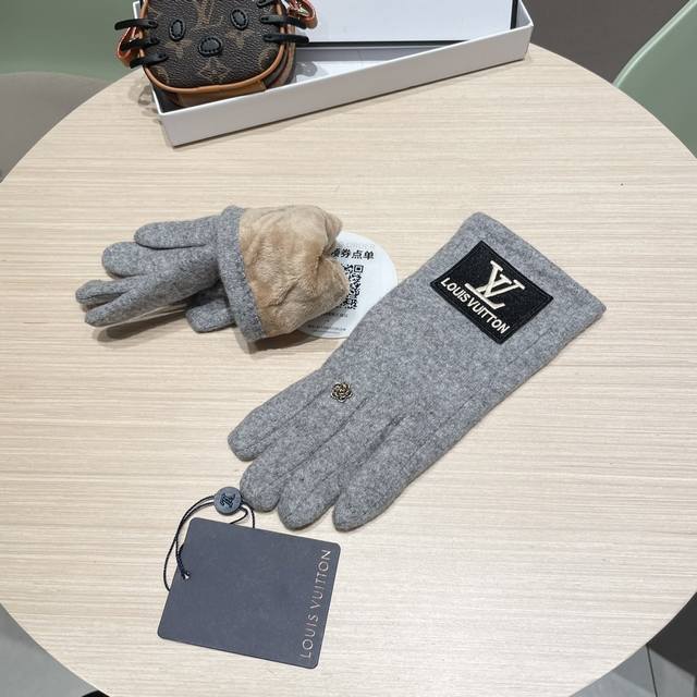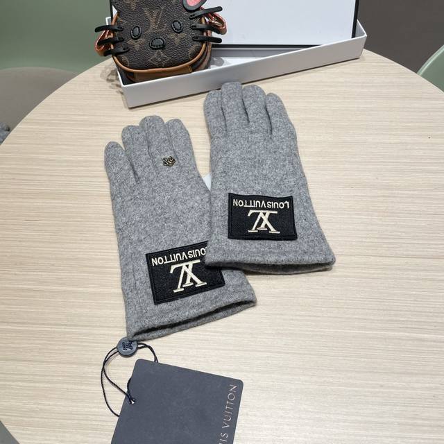 / Louis Vuitton Korean Pink Wool Knitted Gloves Women's Winter Ins Warm Cycling Gl