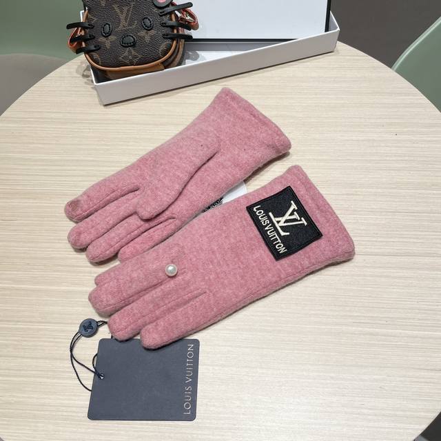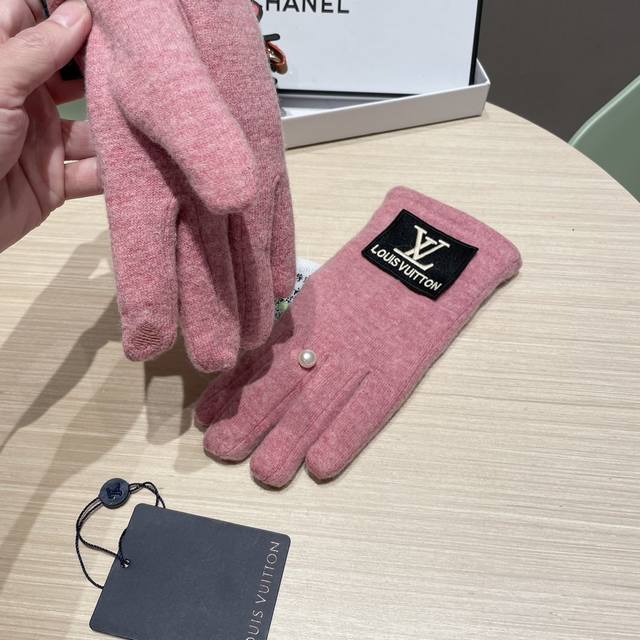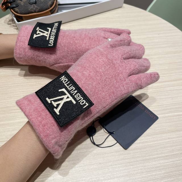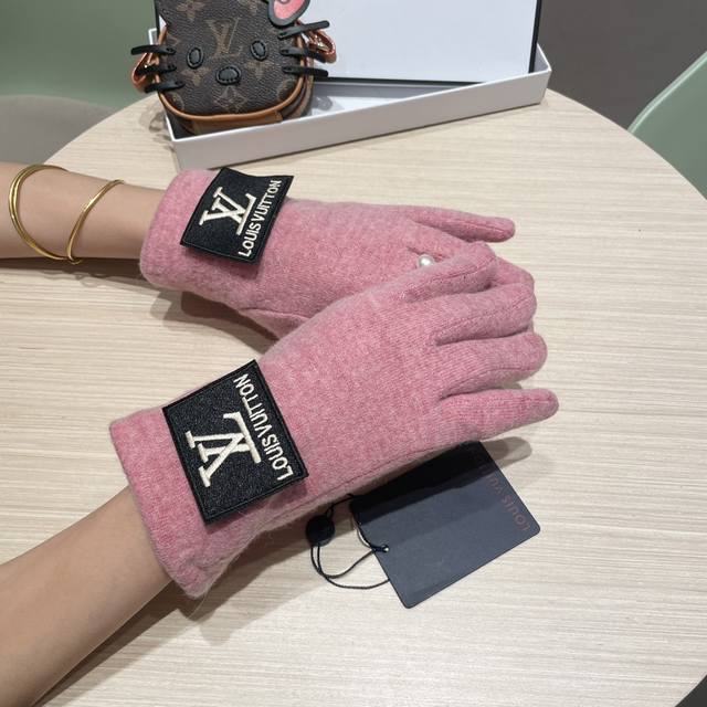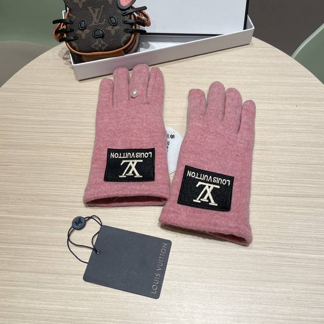 / Louis Vuitton Korean Pink Wool Knitted Gloves Women's Winter Ins Warm Cycling Gl