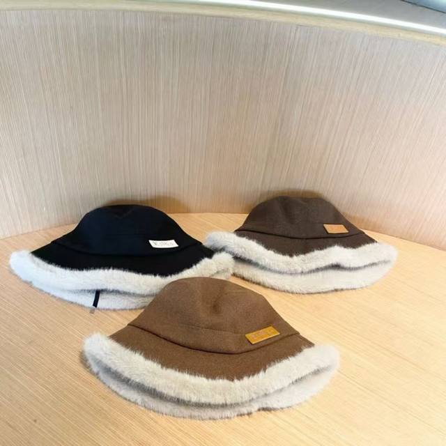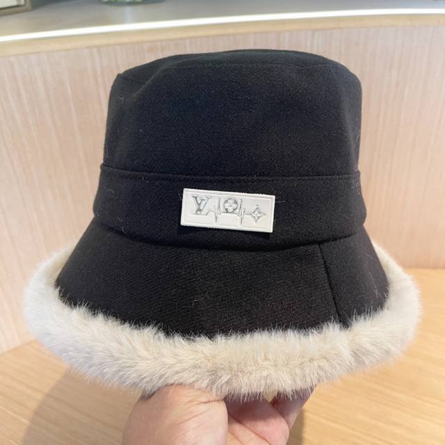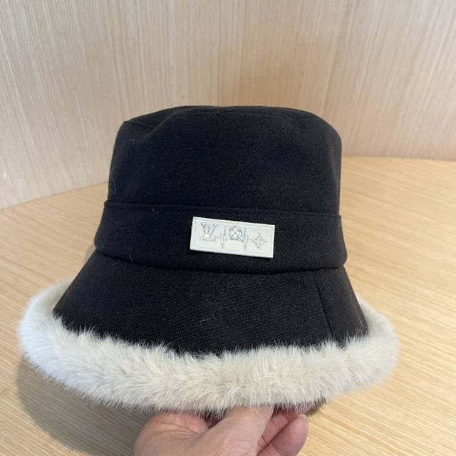 Louis Vuitton Korean Style Plush Bucket Hat for Women, Casual, Versatile, Face-Slimming, Small Bucket Hat, Autumn and Winter Warm and Soft Fisherman Hat (