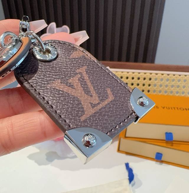 Louis Vuitton Lv Keychain Charm M641 Travel Tag bag charm and keychain embody the nomadic spirit and pay tribute to Louis Vuitton's trunk-making tradition. This accessory is made of luxurious materials and decorated with the Lv initials and a round Lv logo charm. It can be personalized to create your own unique finish.