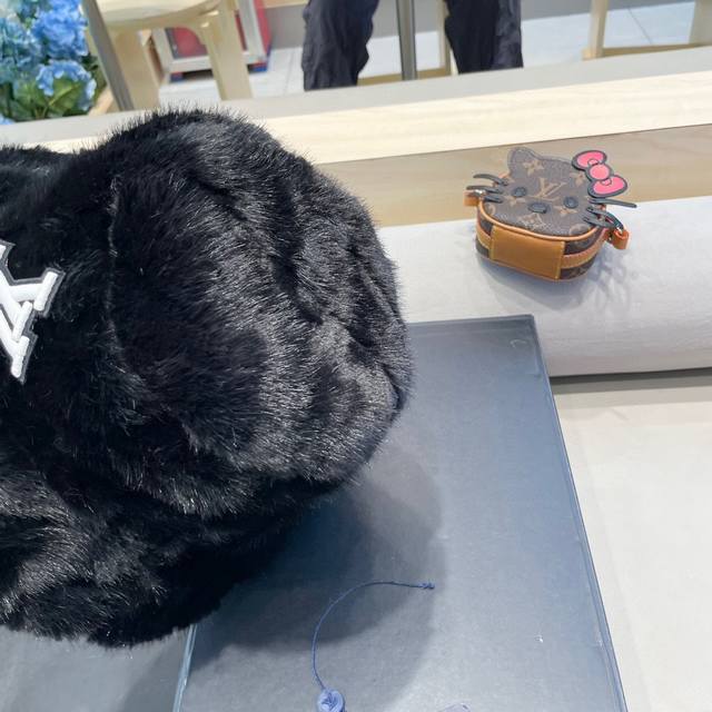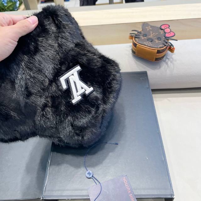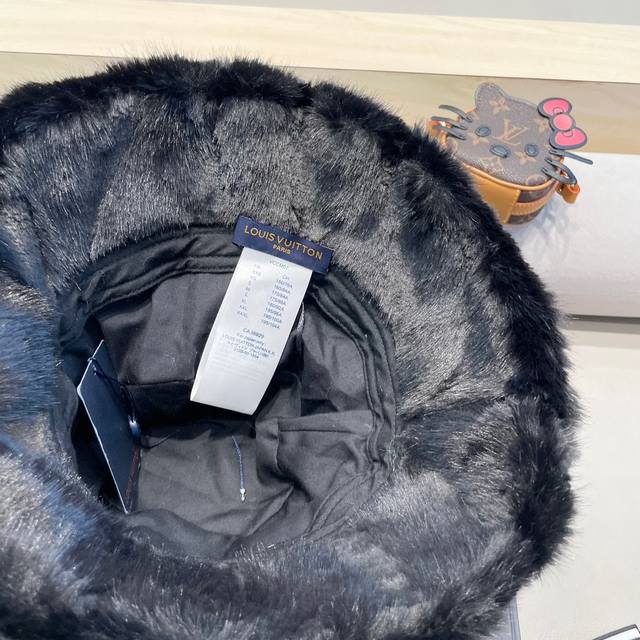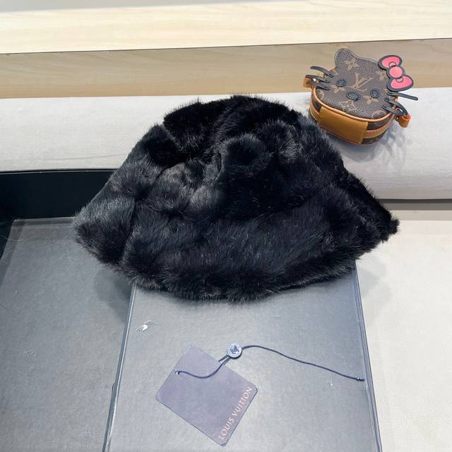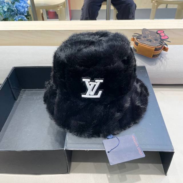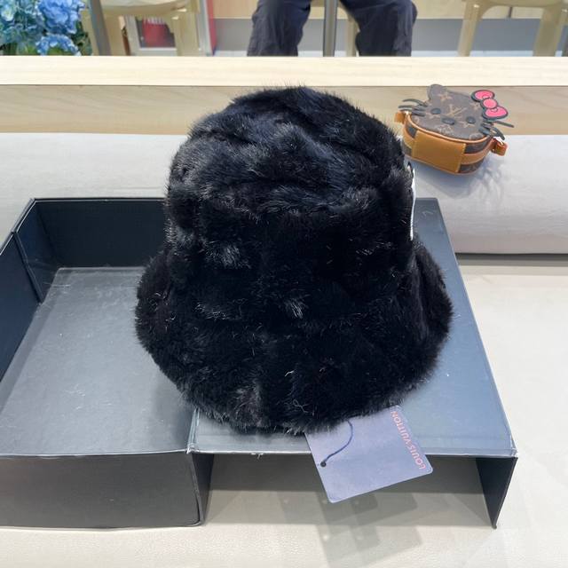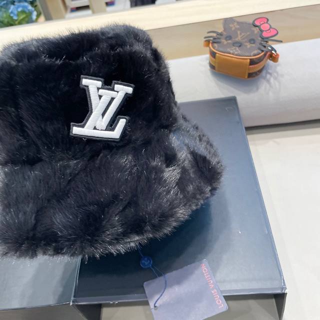Louis Vuitton Lv letter embroidered cashmere fisherman hat women's winter versatile face small bucket hat cold-proof warm ear protection basin hat trendy