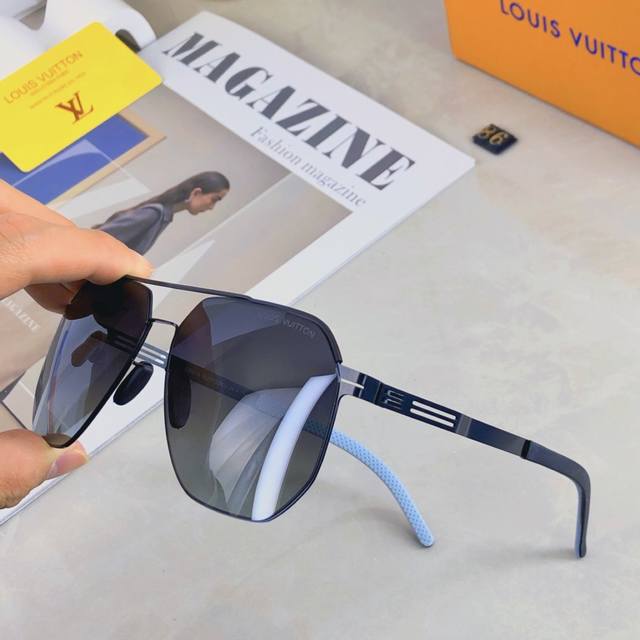 / Louis Vuitton metal double-beam men's toad mirror cool black fashion polarized s