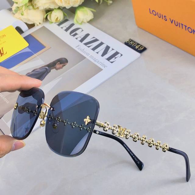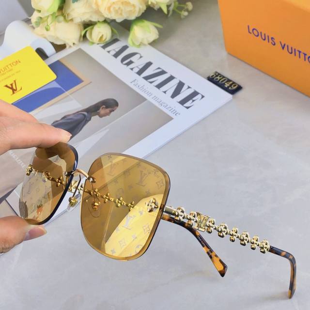 Louis Vuitton new arrivals 2025 new frameless sunglasses with metal four-leaf clover, the same style as the internet celebrity anchors, fashionable women's sunglasses