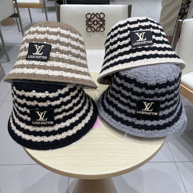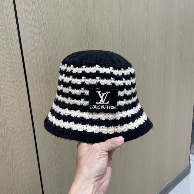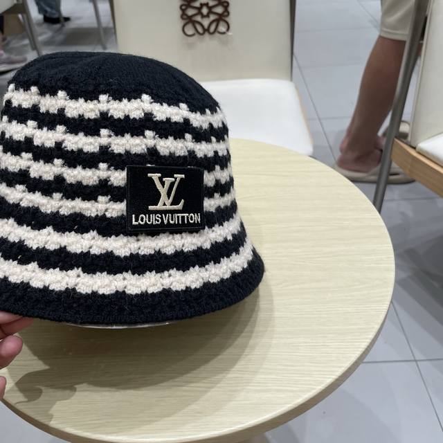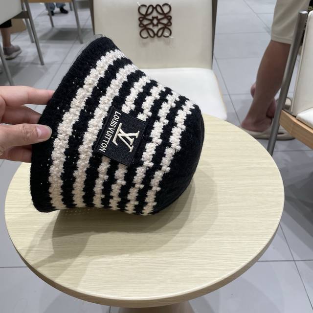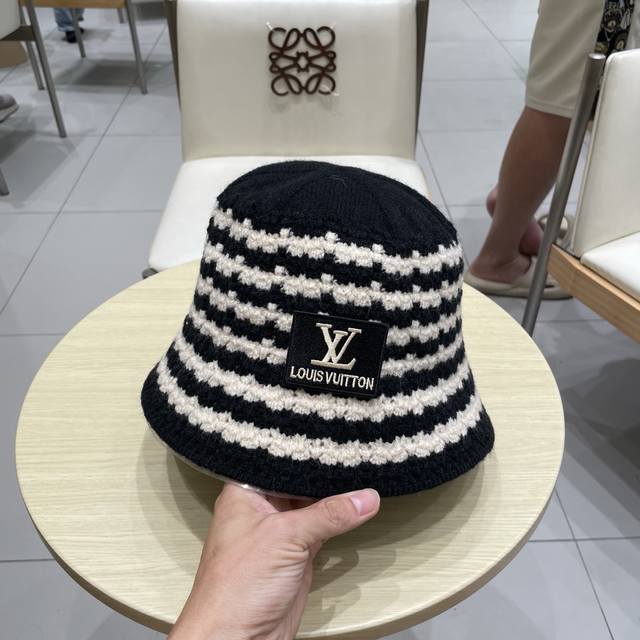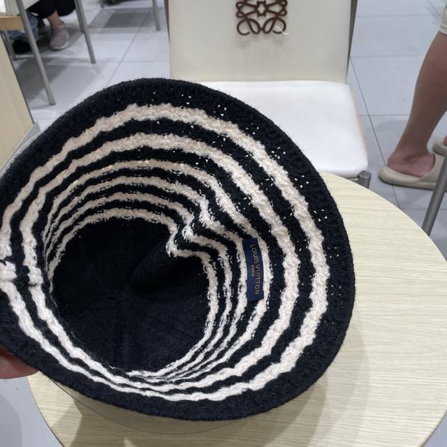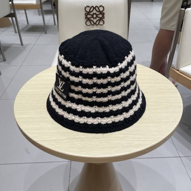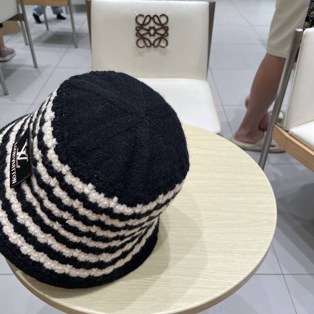 / Louis Vuitton striped hat women's autumn and winter warm woolen bucket hat wool