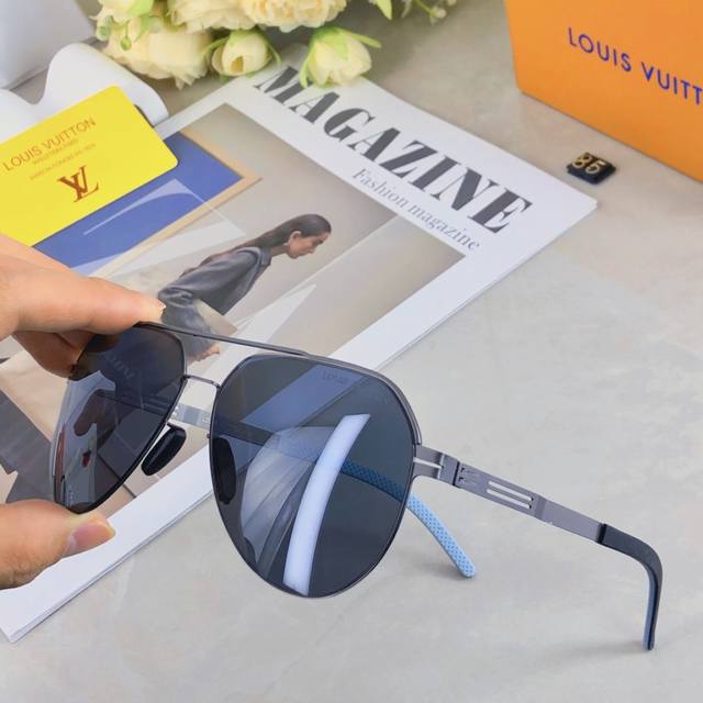 Louis Vuitton summer new polarized sunglasses men's European and American double-beam pilot sunglasses nylon outdoor fishing toad glasses