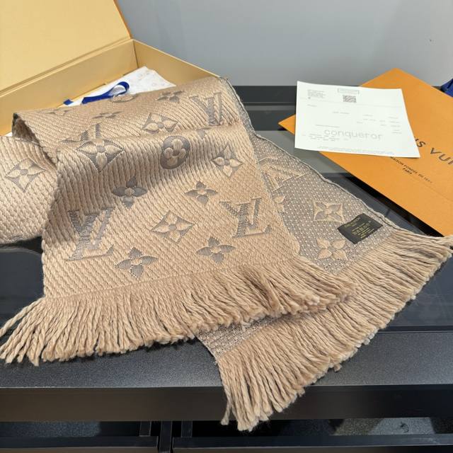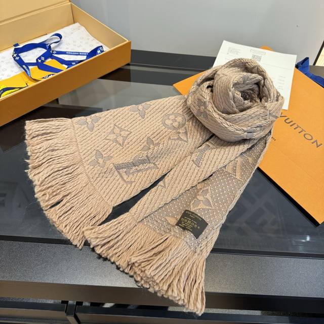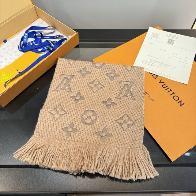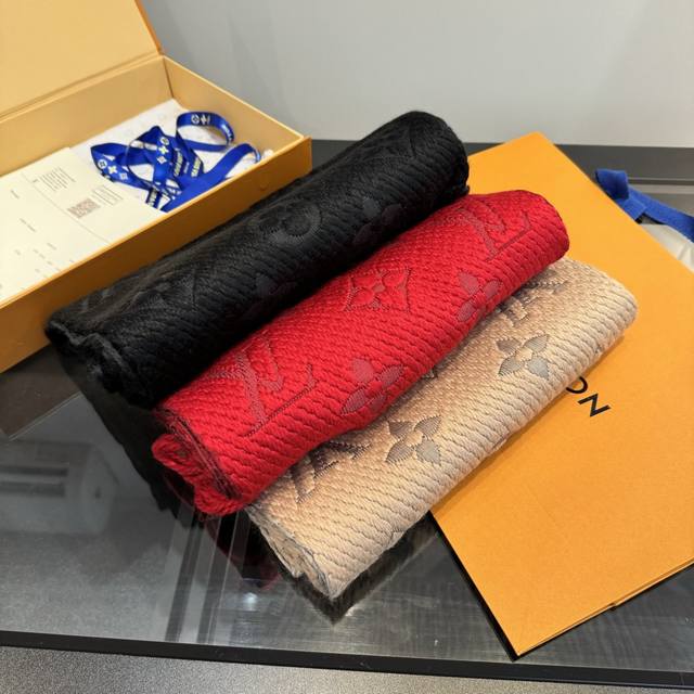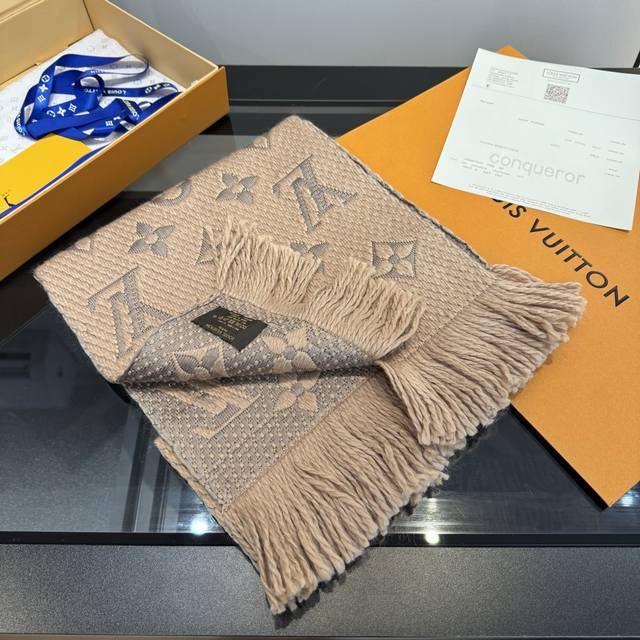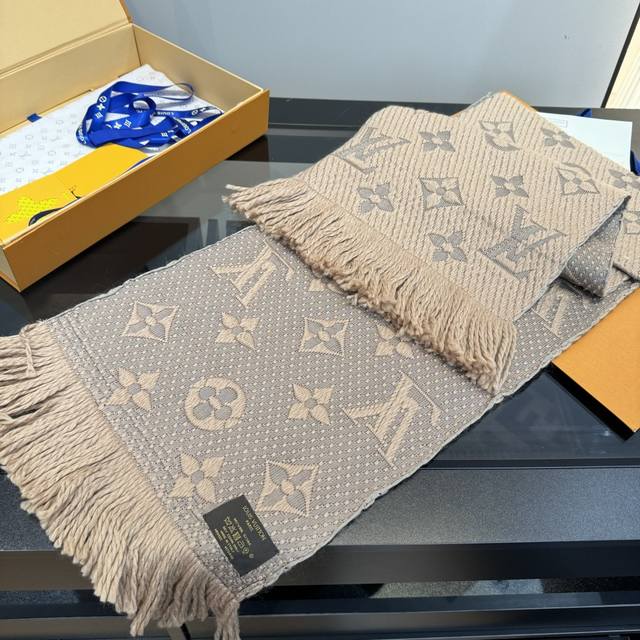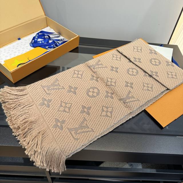 Louis Vuitton Tang Yan Celebrity Style Autumn/Winter Wool Scarf, Thick and Warm Cashmere Scarf/Shawl, Two-in-One Solid Color. This scarf features the classic Monogram pattern and the Louis Vuitton initials. One side is warm wool, and the other side is soft silk. A high-quality and stylish piece to accompany you through the long winter and keep you warm throughout autumn and winter. 94% Wool, 6% Silk. 175:31