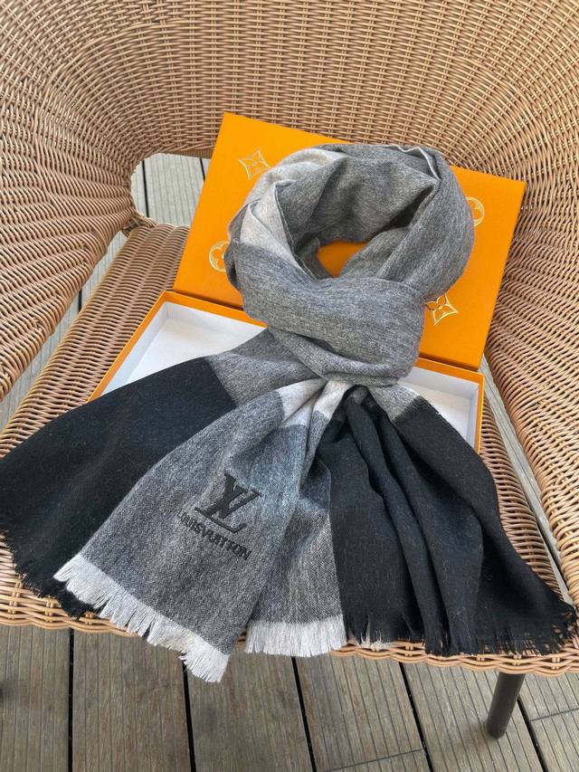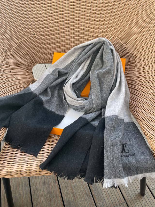 Louis Vuitton unisex cashmere classic check scarf. A high-end product with classic logo embroidery. A top-tier design from a top fashion brand. You'll understand once you hold it in your hand