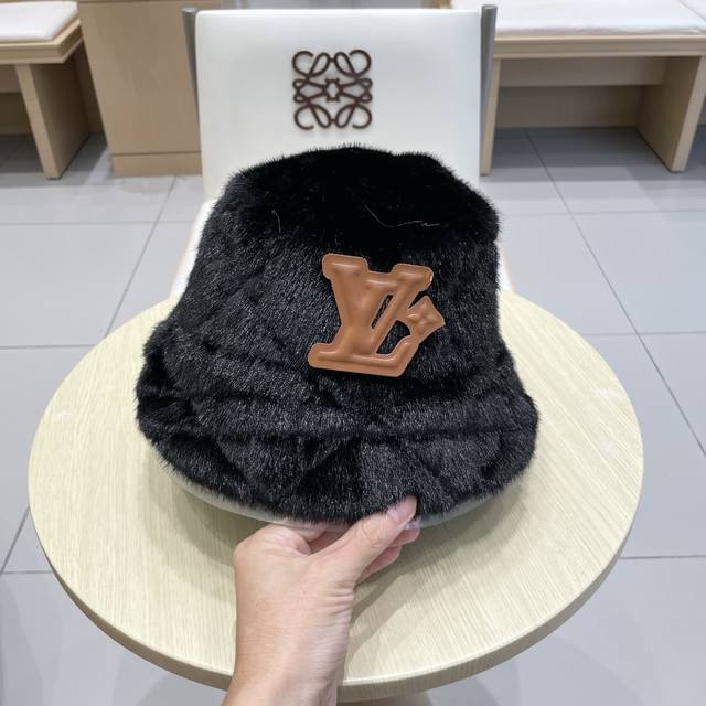 Louis Vuitton versatile bucket hat for women, winter fluffy outdoor warm three-d