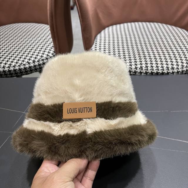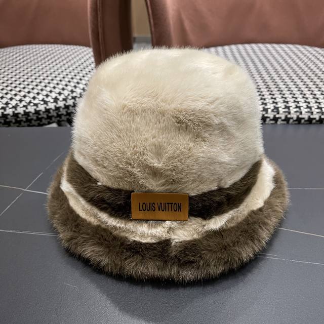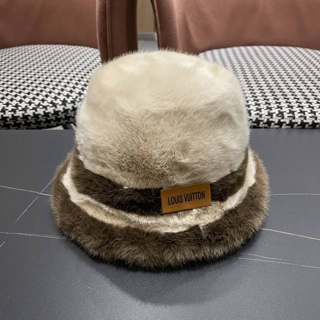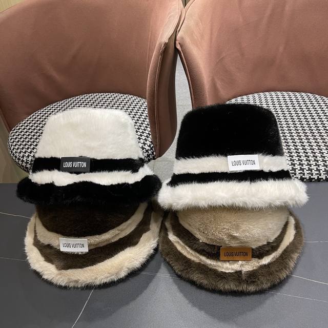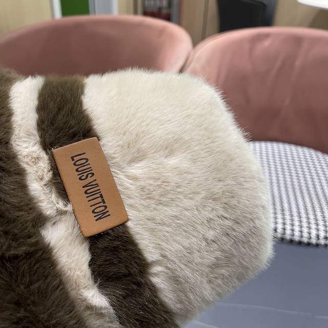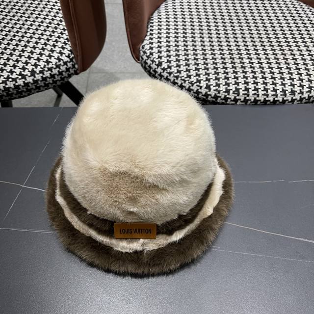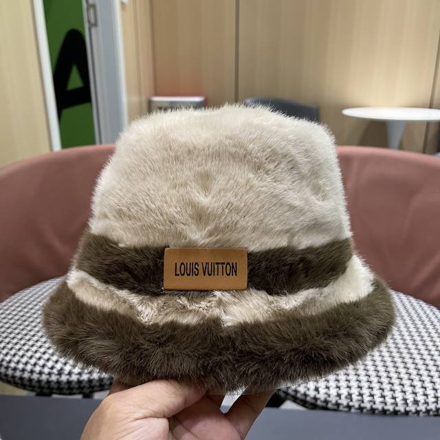 Louis Vuitton Women's Winter New Style Hat, Face-Slimming Fleece-Lined Warm Ear-Protective Hat, Large Headband Bucket Hat, Fluffy Fisherman Hat