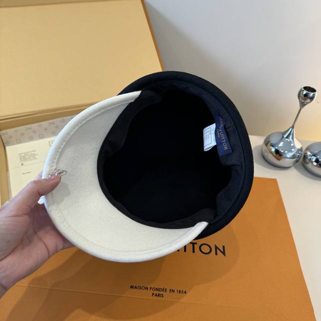Louis Vuitton wool cap, washed leather brim, high-end color blocking, 100% wool, adjustable head circumference 57cm.