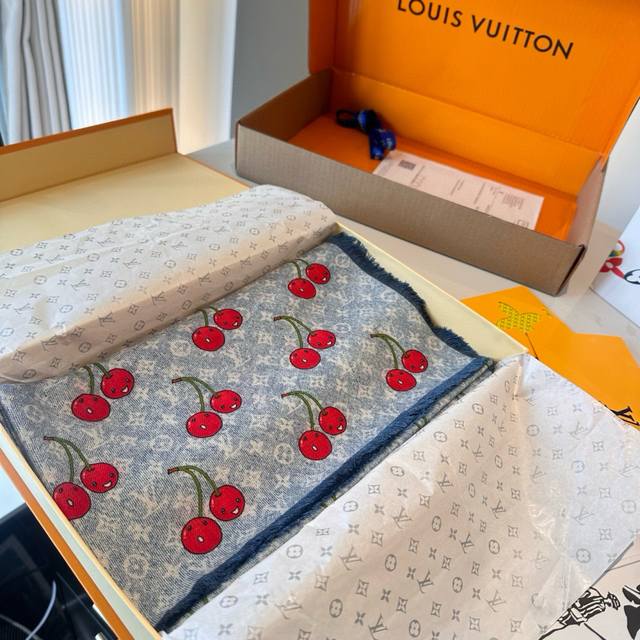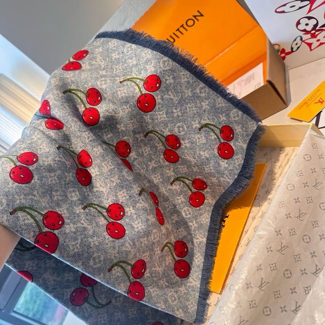 Louis Vuitton x Tm Monogram Cerise Handkerchief (LV x Takashi Murakami Reissue) is from the Louis Vuitton x Takashi Murakami reissue collection. It features a luxurious silk and wool embellished with the Monogram pattern, infused with fresh vitality by the lively cherry motifs depicted by the Japanese artist. Whether worn alone or paired with other items from the same collection, it exudes a striking style. 140140 Handkerchief