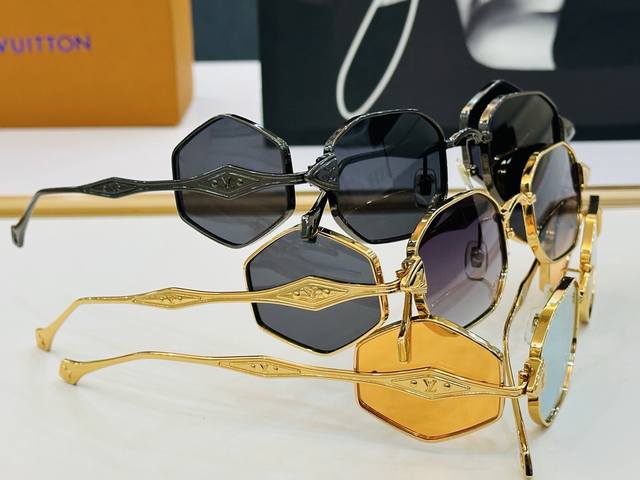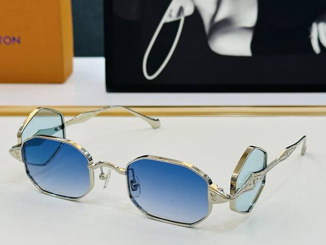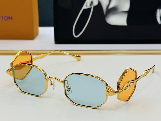 Lv 2025 new men's and women's couple's sunglasses, polygonal, IP-plated, never-f