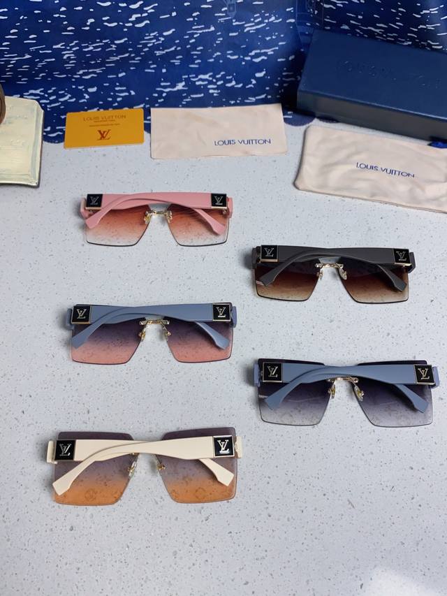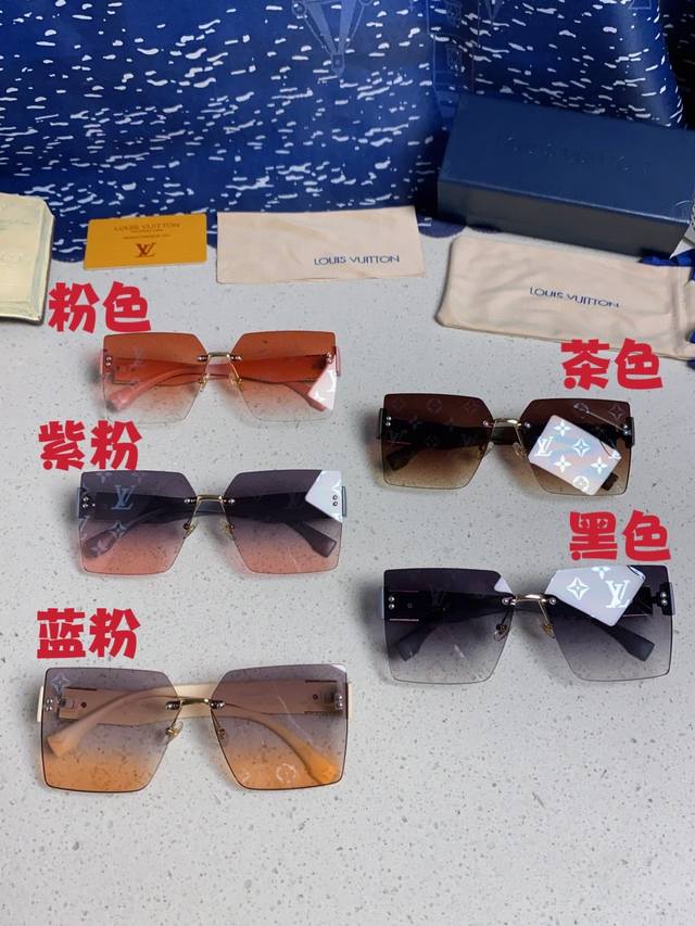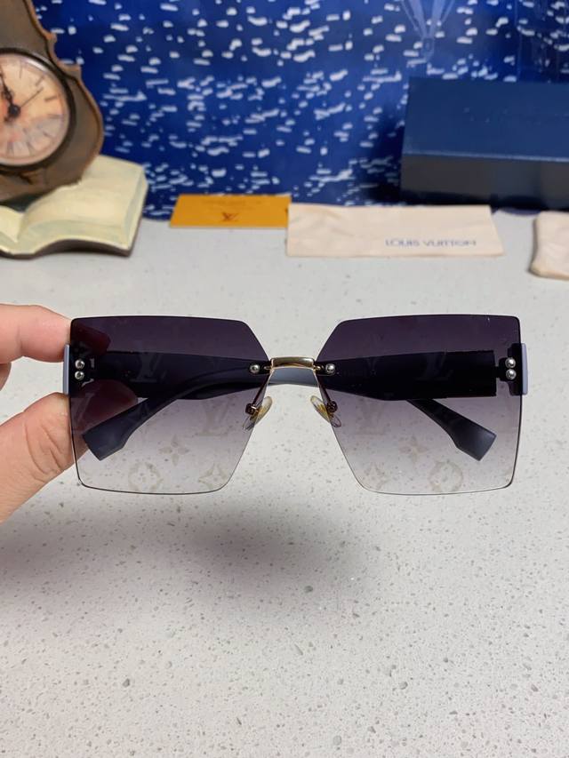 Louisvuittion Louis Vuitton 2025 new Korean version fashion frameless cut edge large frame round face sunglasses starry edge network celebrity anti-ultraviolet elegant square sunglasses