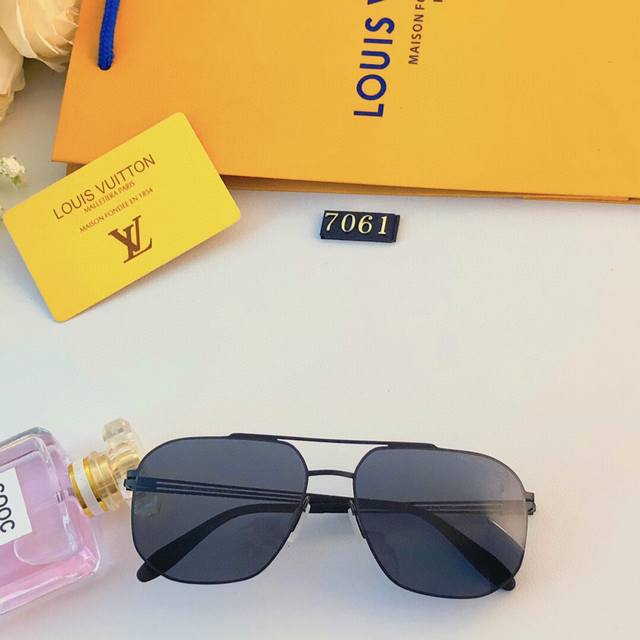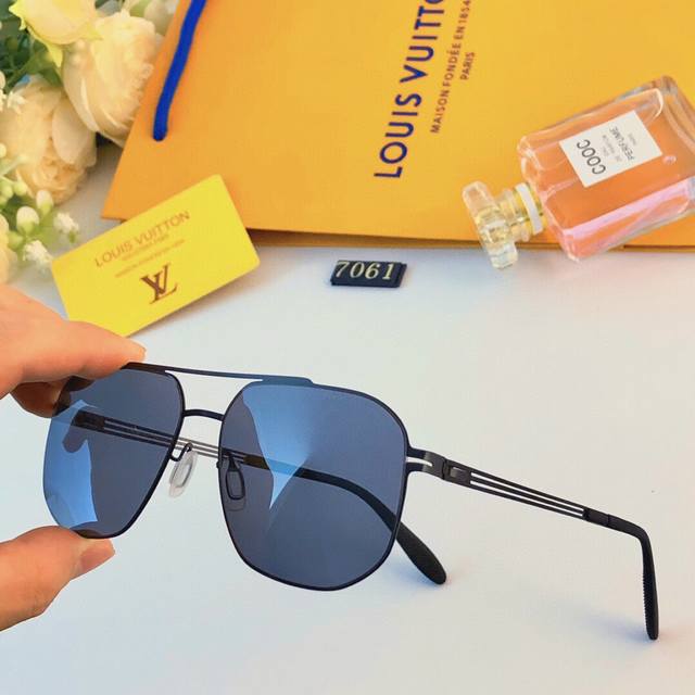 / Louisvuitto* New Double-Bridge Metal Luxury Men's Sunglasses Fashion Trend Drivi