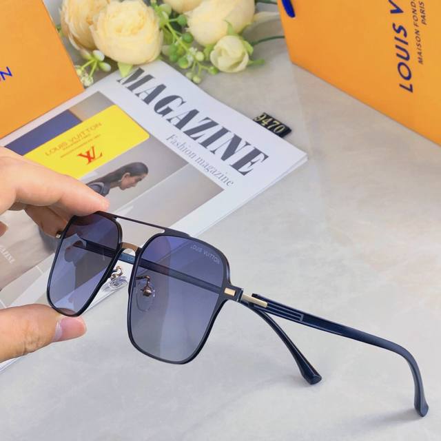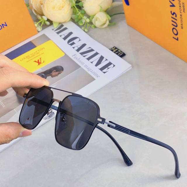 Louisvuitto*Aviator polarized sunglasses for men, fishing and driving, personalized double-beam metal sunglasses, fashionable and versatile, face-shaping