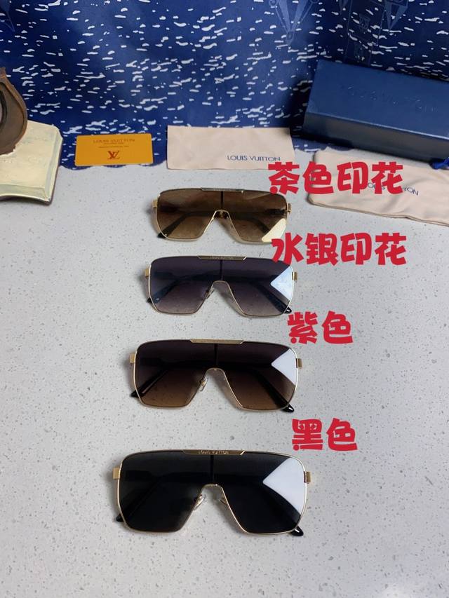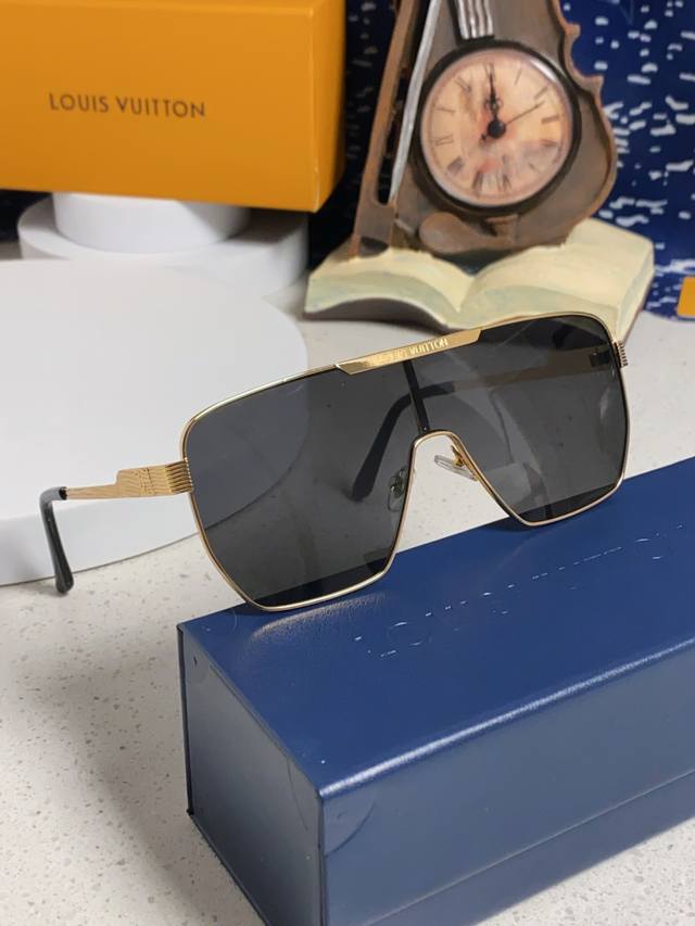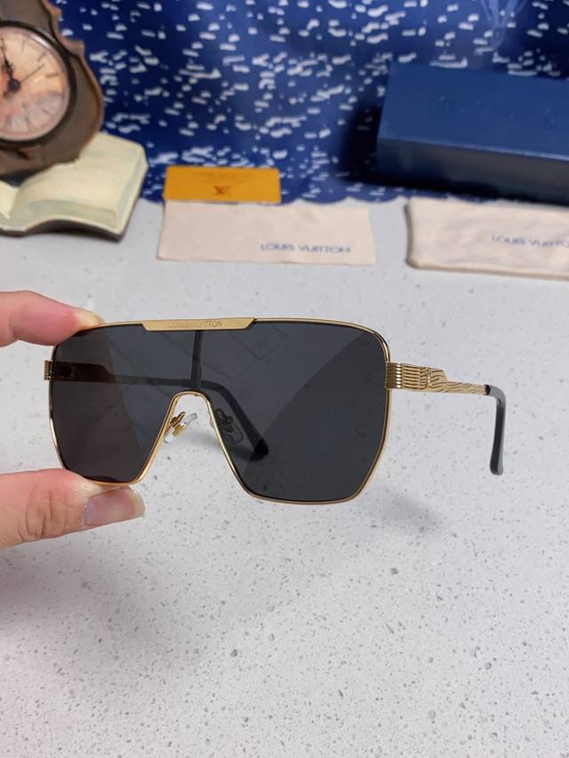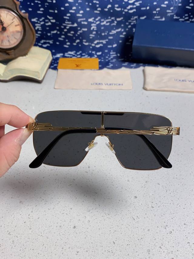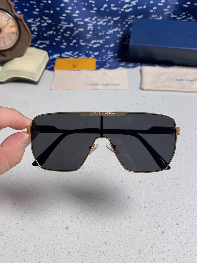 Louisvuitton 2025 new Lv European and American high-end men's square frame one-piece eye protection sunglasses European station blogger driving UV protection sunglasses