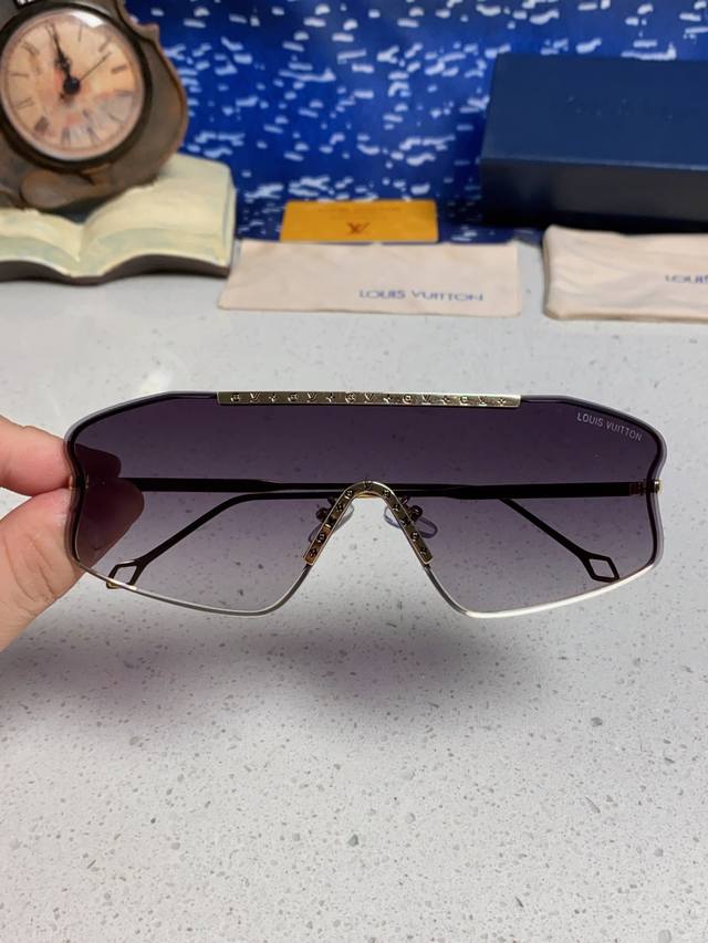 Louisvuitton Louis Vuitton 2025 new polygonal one-piece large frameless sunglasses for men and women Lv fashion personality sunshade sunglasses