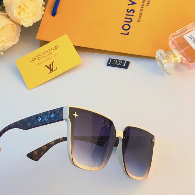 Louisvuitto*Sunglasses for women trendy four-leaf clover internet celebrity street-shading sunglasses make your face look smaller when driving white driving mirror for travel