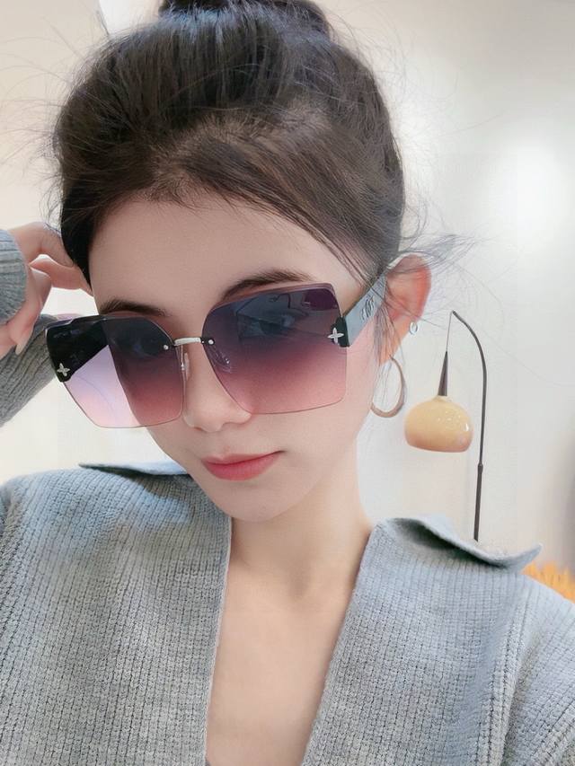 / Lv 2025 new women's square frame sunglasses driving sunglasses new frameless sun