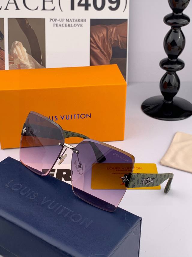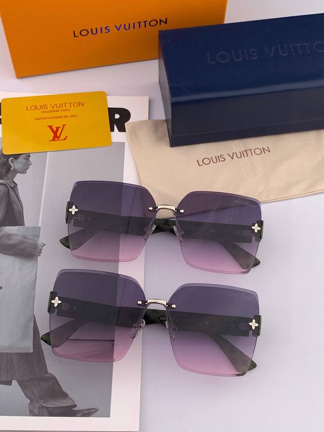 Lv 2025 new women's square frame sunglasses driving sunglasses new frameless sunglasses fashionable and generous comfortable lightweight exquisite luxury ultra-light model: L1294