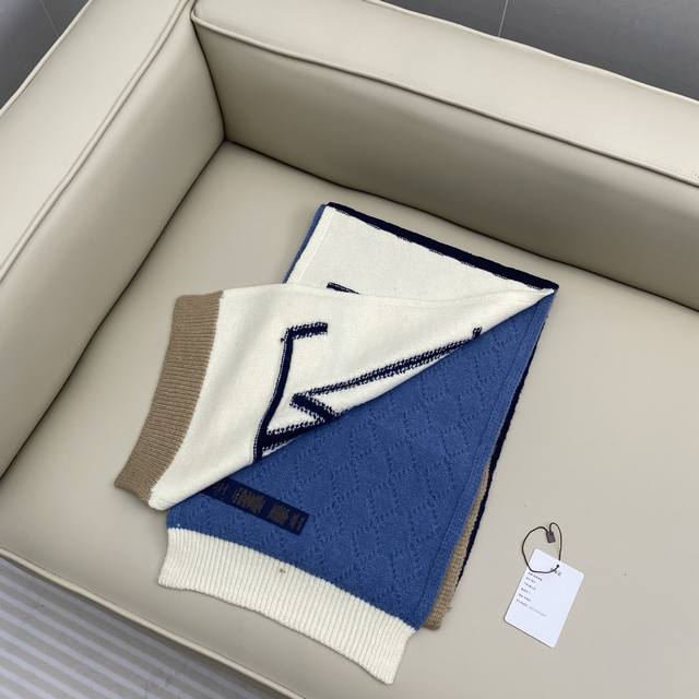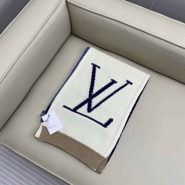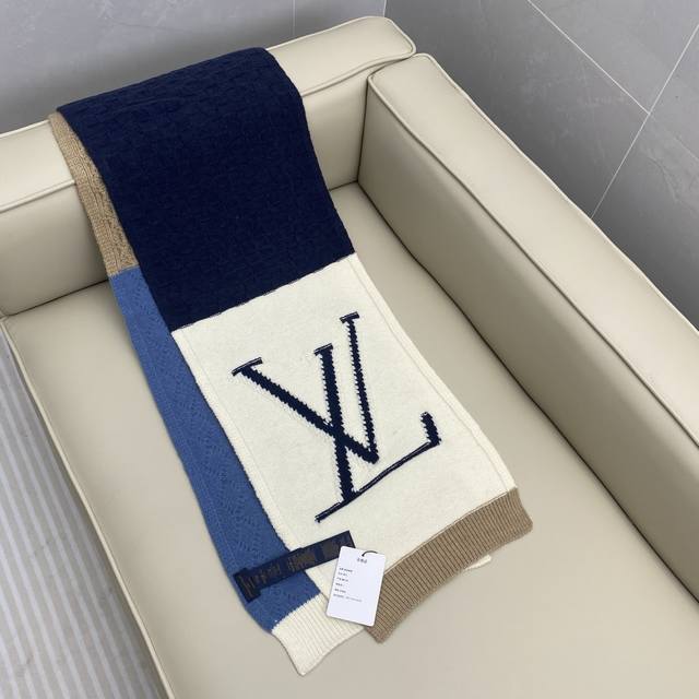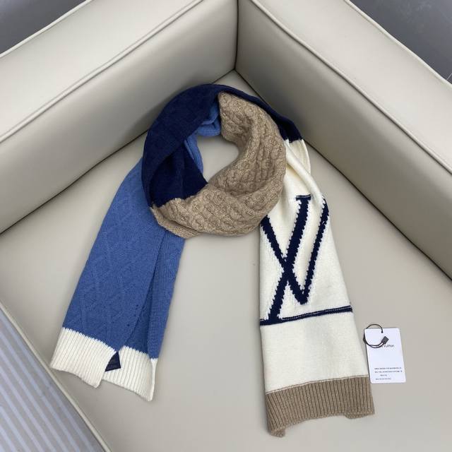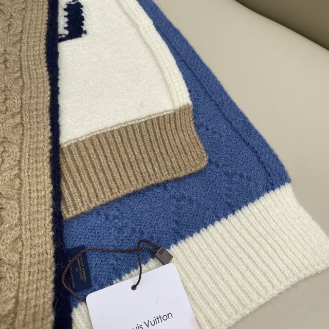 The Lv Cable scarf utilizes a variety of knitting techniques to create eye-catching patchwork effects and a cozy texture for an oversized silhouette, cleverly showcasing the new season's style. Eye-catching logos add a touch of brand flair. 175 x 30 cm, 100% wool