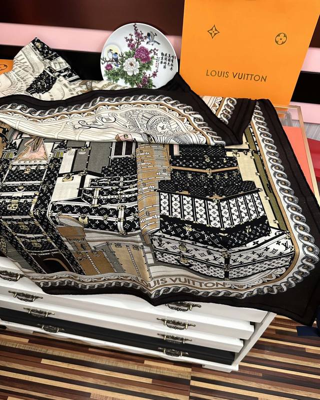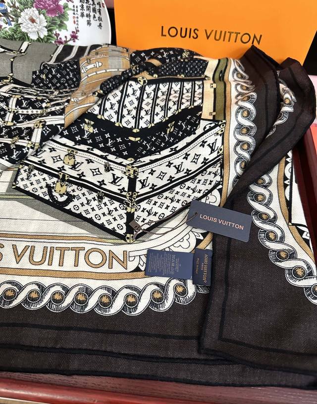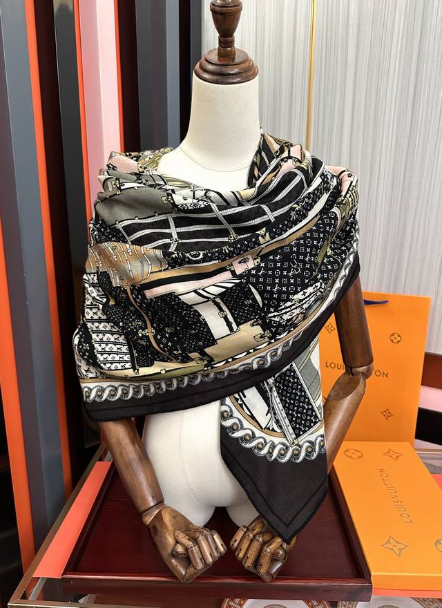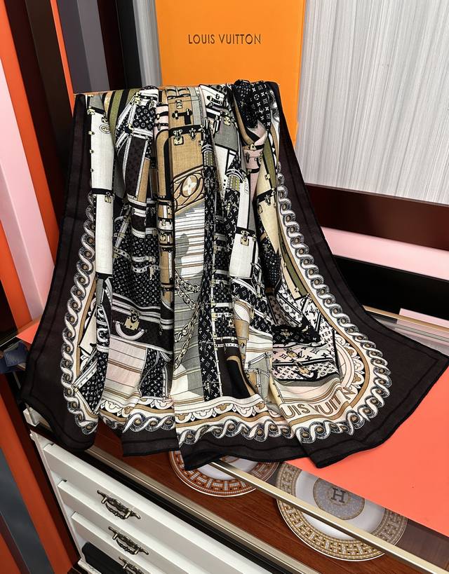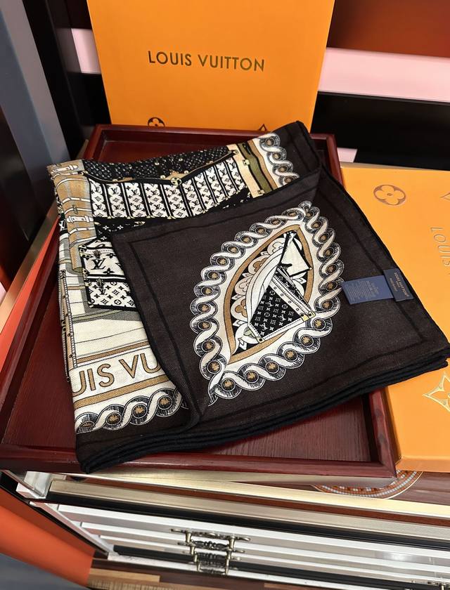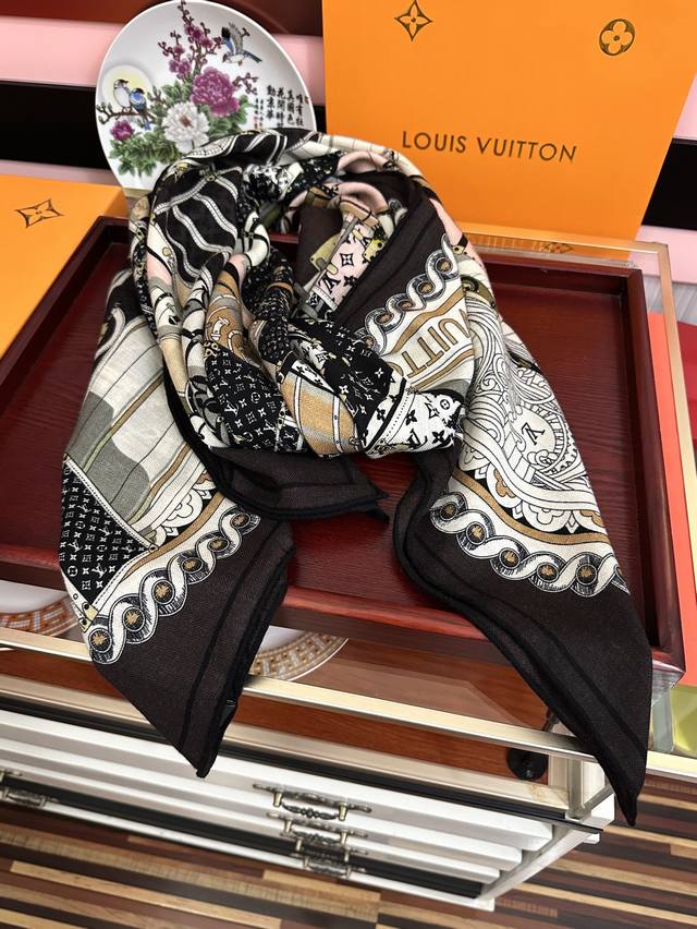 Lv Double-sided same color classic elegance~ The new season's fabric is super high-end, truly super soft, silky smooth, and very resilient, not easily snagged! This year's new series~ I'm really amazed by this design. A scarf gives you the best match [lips]. The effect when worn is simply elegant and sophisticated, very dynamic. Layered and elegant texture. The effect when worn is really beautiful, goes without saying. It looks even better with clothes, shoes and bags [beer]. The actual product is definitely more beautiful. Classic black and white. Size: 140X140, Material: 30% silk + 70% silk cashmere.