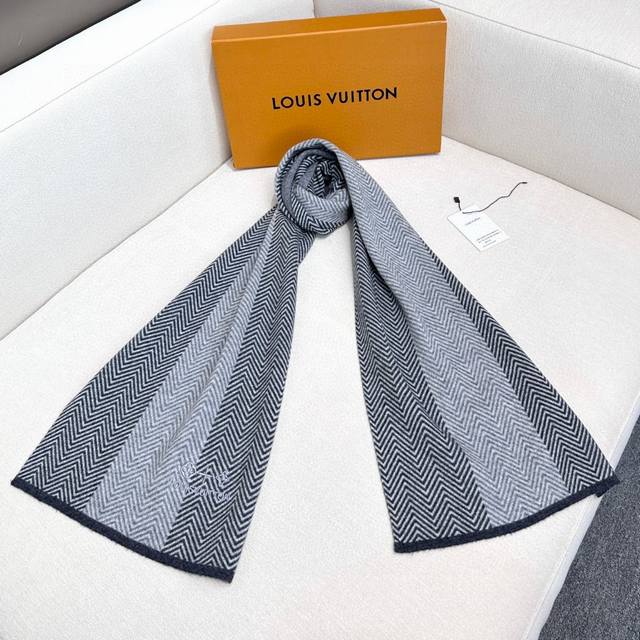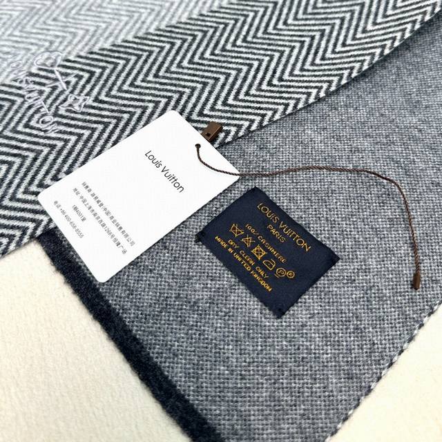 LV Hot Selling Item New Upgrade! Extremely soft and skin-friendly! High-end men's and women's scarf, LV four-leaf clover logo exclusive high-quality item. Only scarves of extremely high cashmere quality are favored by this brand. This exquisite scarf is extremely rare on the market, with a low-key yet luxurious color scheme. It is very soft and comfortable, and each piece sold out is a limited quantity. 100% imported knitted cashmere. Size: 180*32, two colors available.