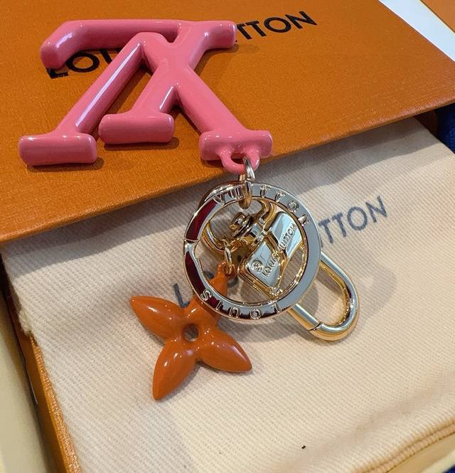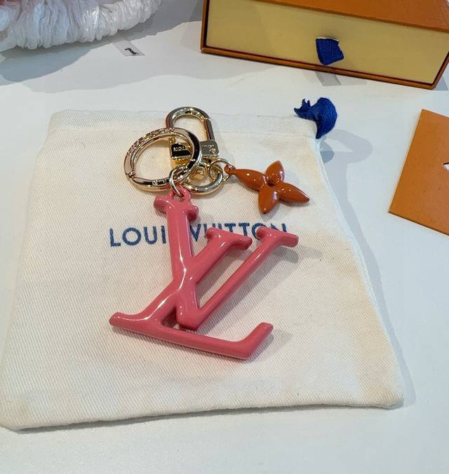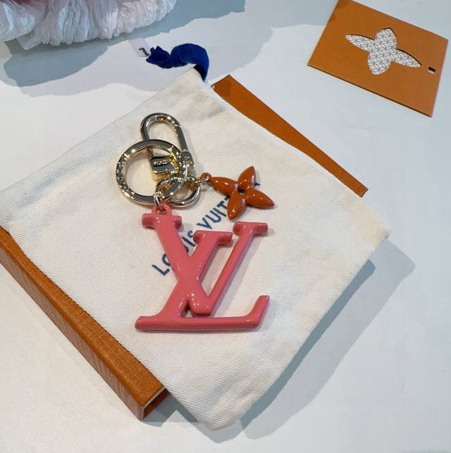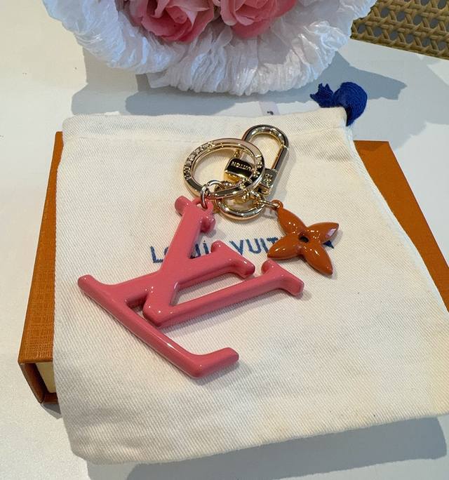 Lv Keychain Enamel Craft Lv Letter Pendant Pop Flower Bag and keychain charms are perfect for adding a signature touch to leather accessories. Features a gold-tone metal clasp embellished with a vibrant Lv initials and monogram flower pendant, charm, monogram, and initials. Lv
