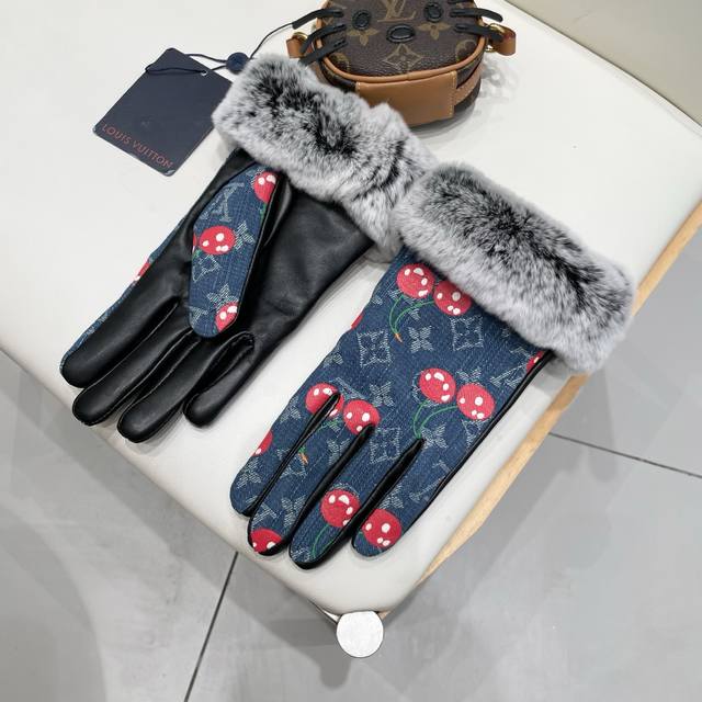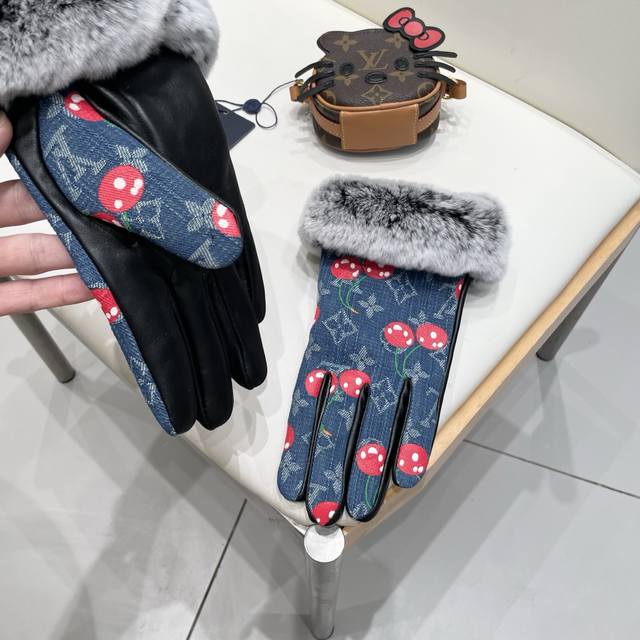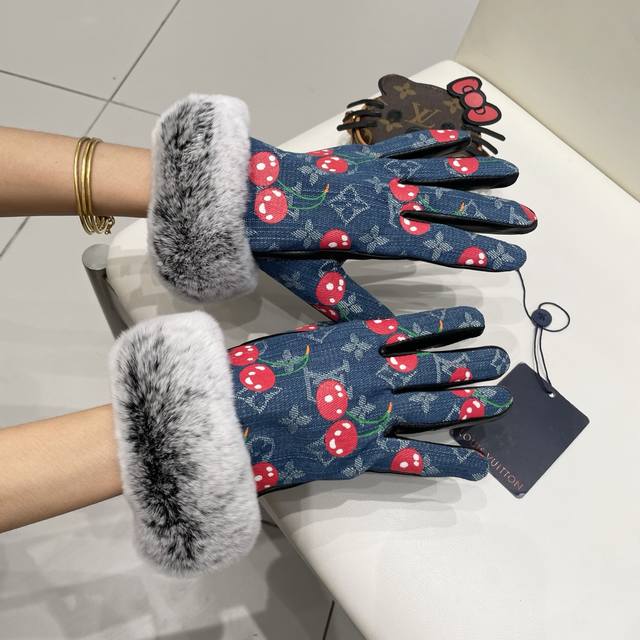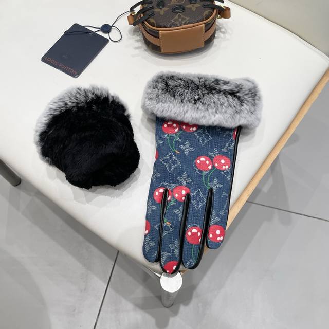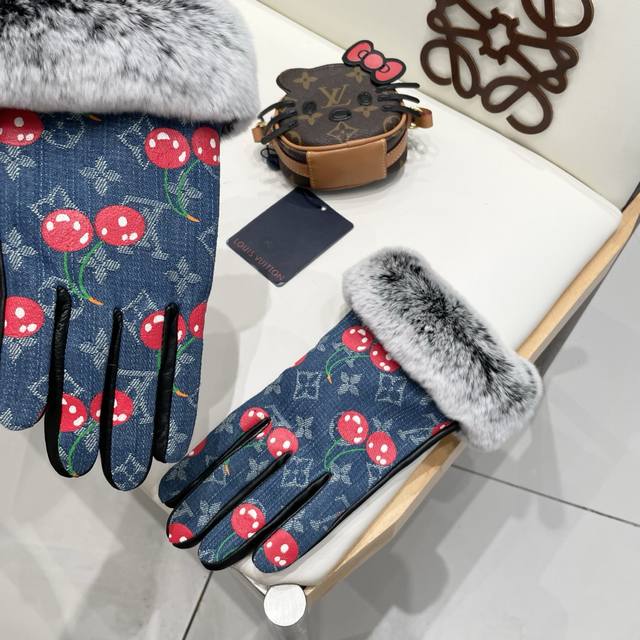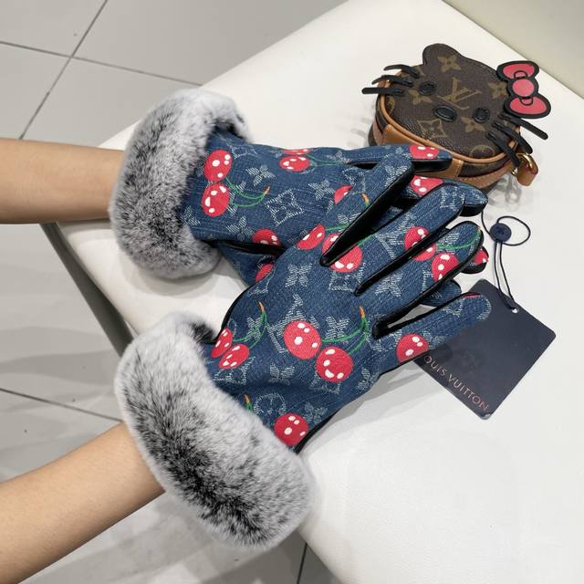 Lv Louis Vuitton 2025 Cherry Autumn/Winter Lazy Rabbit Sheepskin Gloves for Mobile Phone Touch Screens. Worth comparing the same style with different qualities, instantly killing inferior products on the market. Imported first-grade sheepskin lazy rabbit fur lining with velvet, classic and timeless style. If you like it, you can buy it now. This quality can be used this year and next year. Size Ml