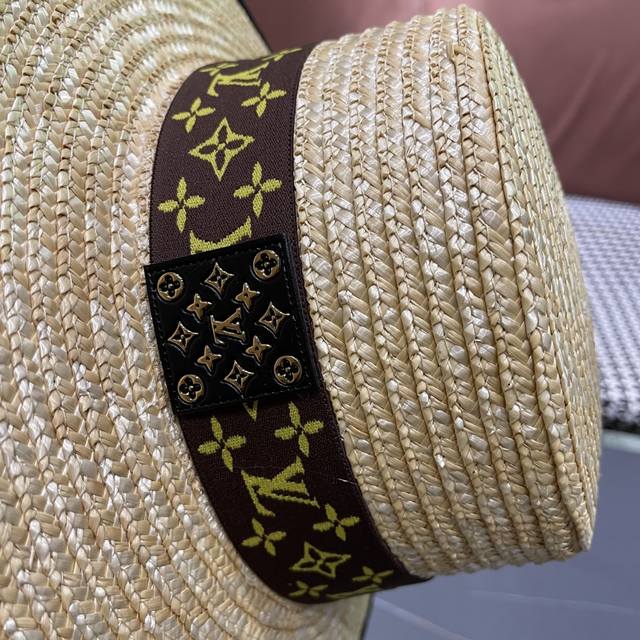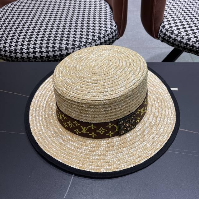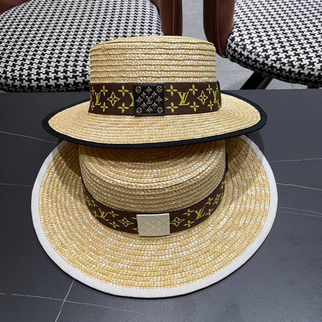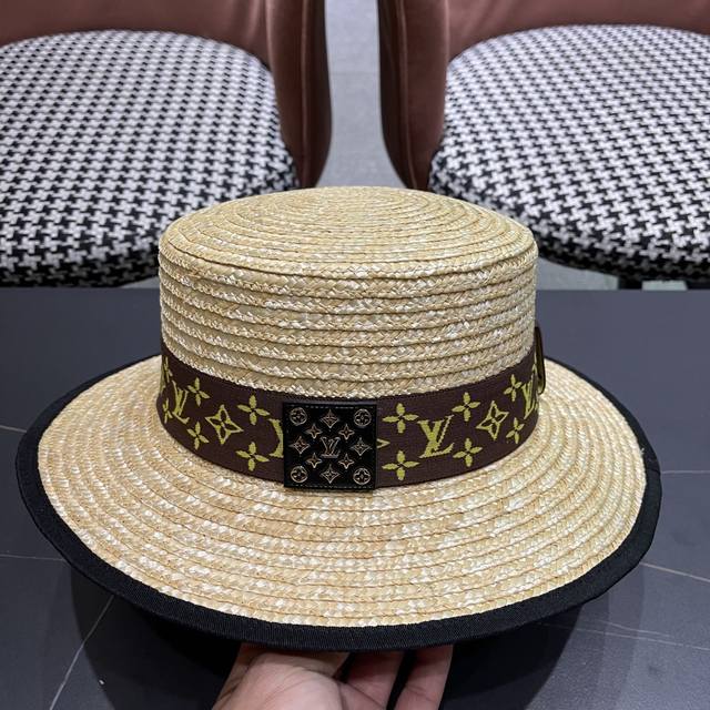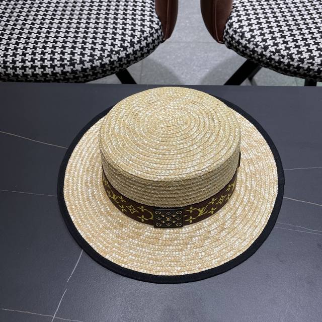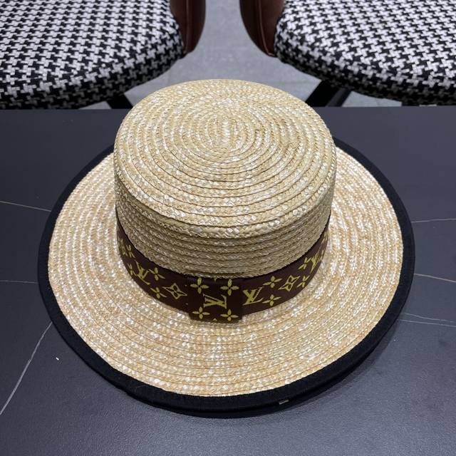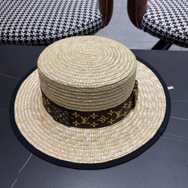 Lv Louis Vuitton flat top hat spring and summer edging lace retro simple wide brim European and American casual degree
