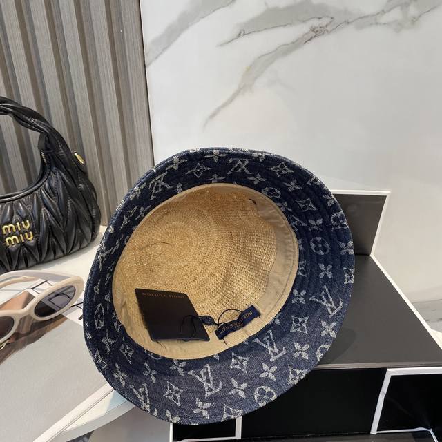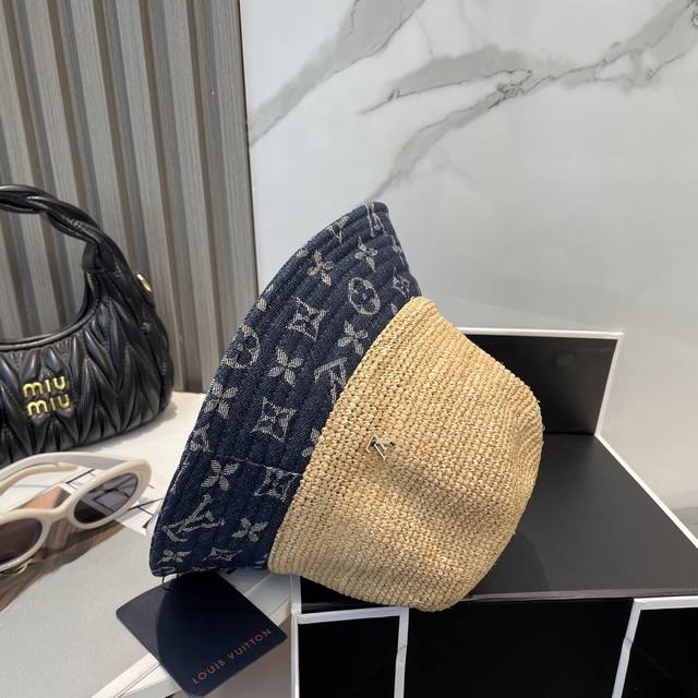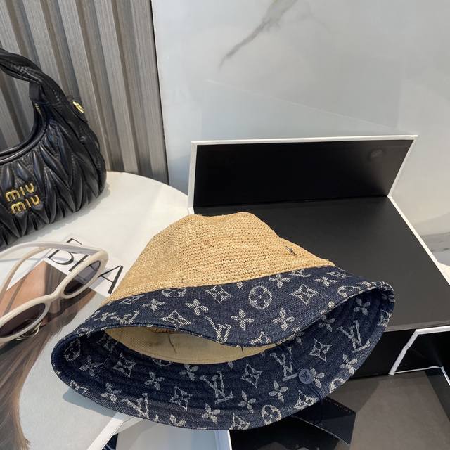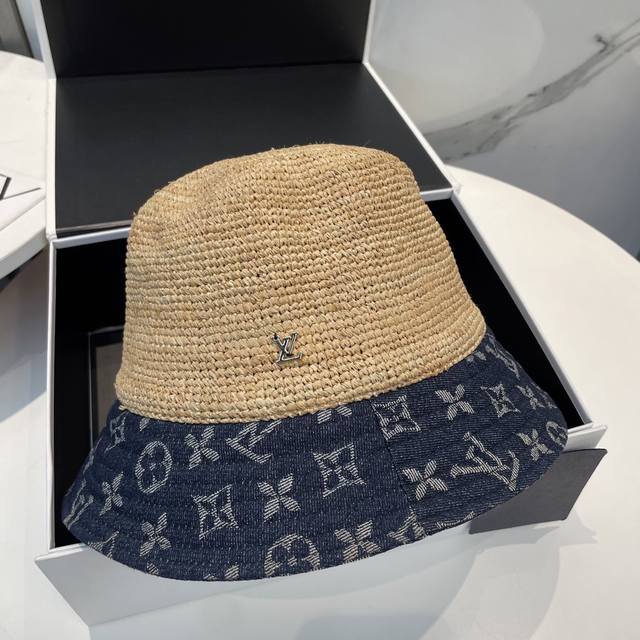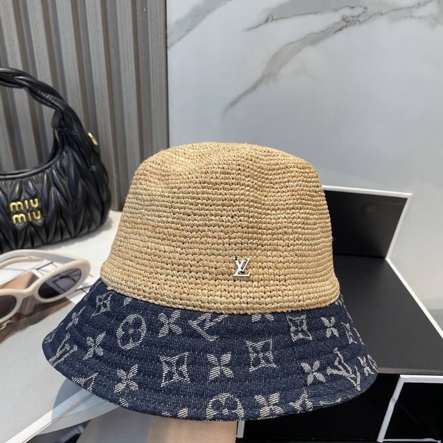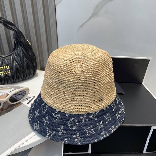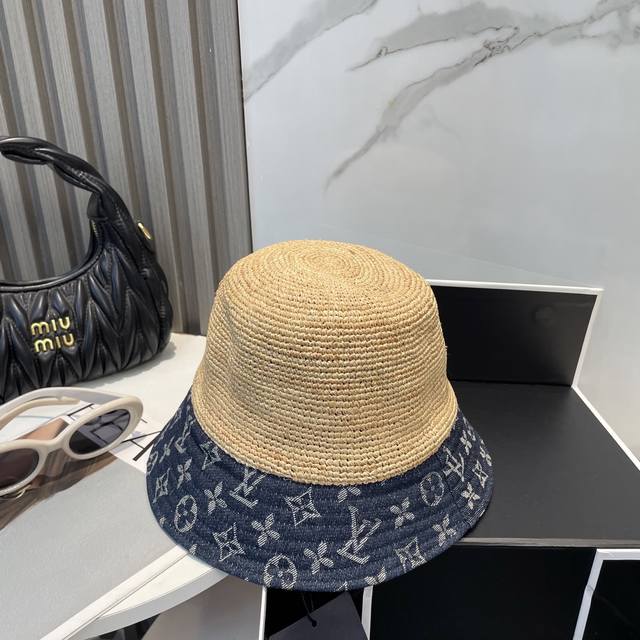 Lv Louis Vuitton Imported Raffia Straw Color-Blocked Bucket Hat, Simple Yet Elegant, Understated Luxury With A Strong Sense Of Style! Fisherman's Hat Design, Truly Stylish And Versatile.