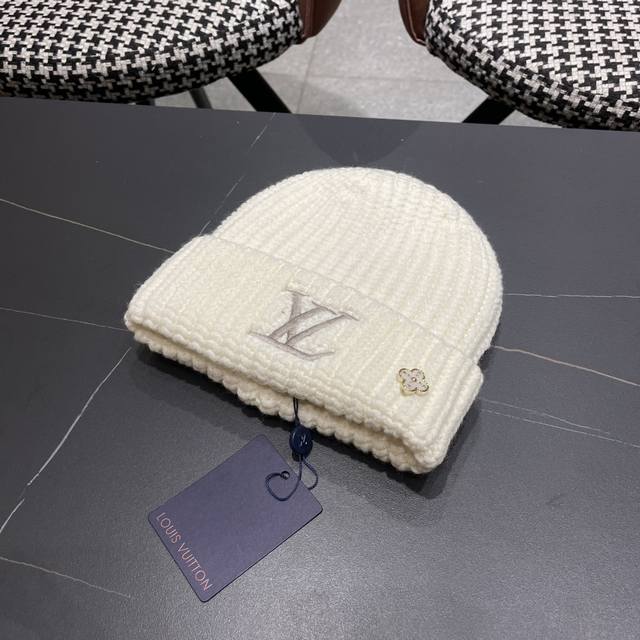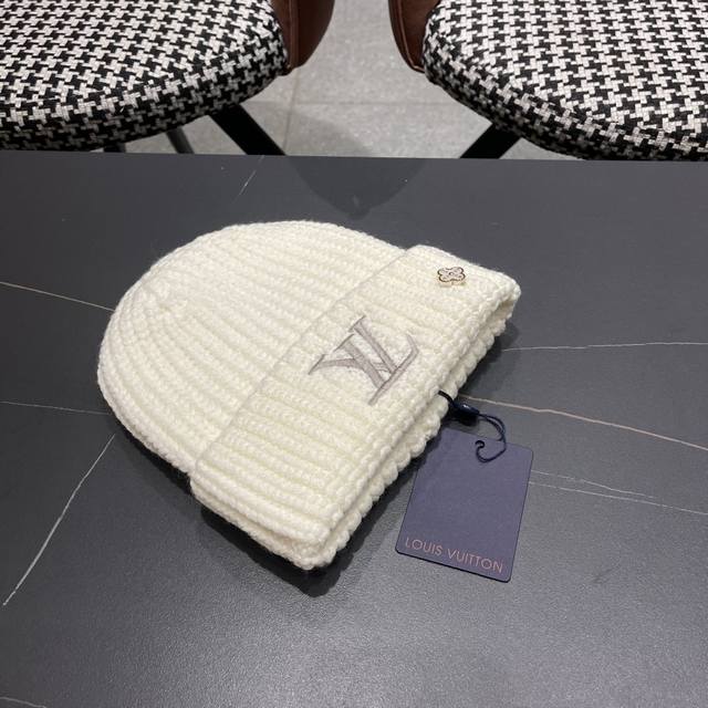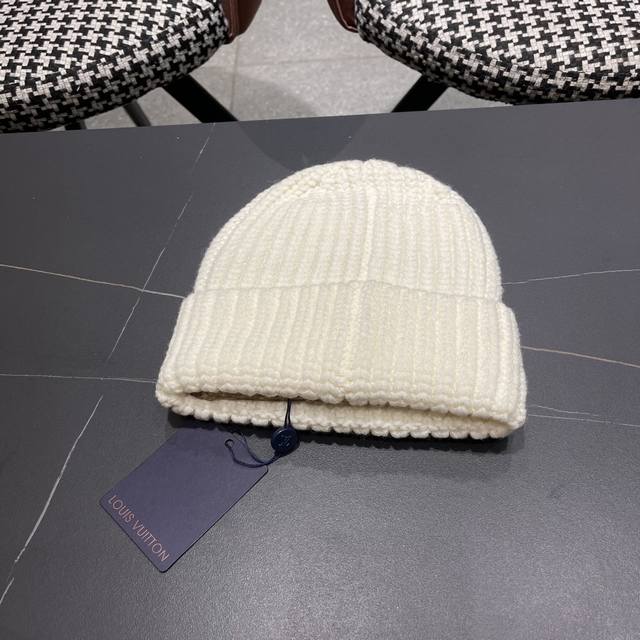 Lv Louis Vuitton men's hat pure wool classic rib knit embroidery Lv initials new