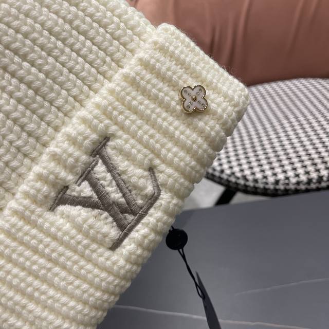 / Lv Louis Vuitton men's hat pure wool classic rib knit embroidery Lv initials new