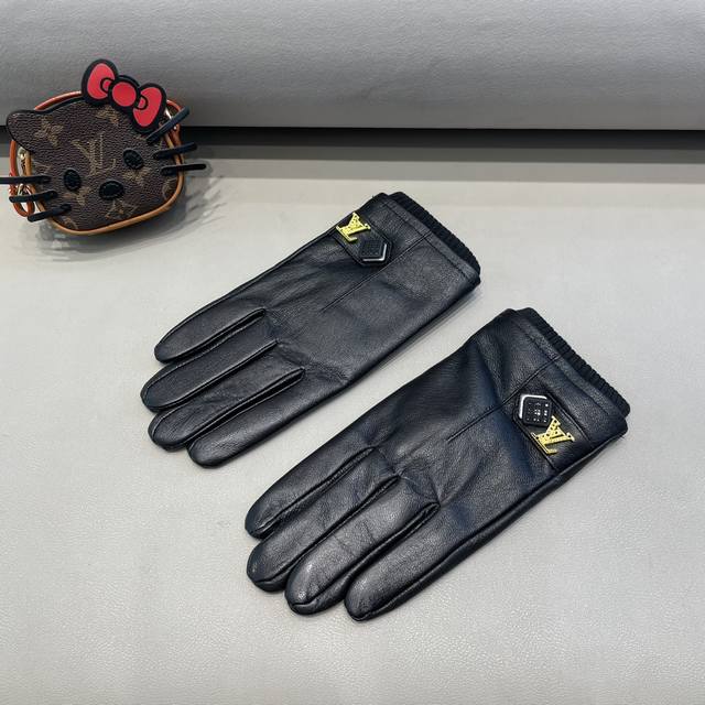 Lv Louis Vuitton men's new sheepskin gloves, fashionable gloves, warm in autumn